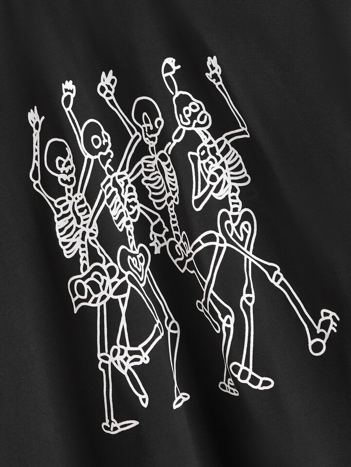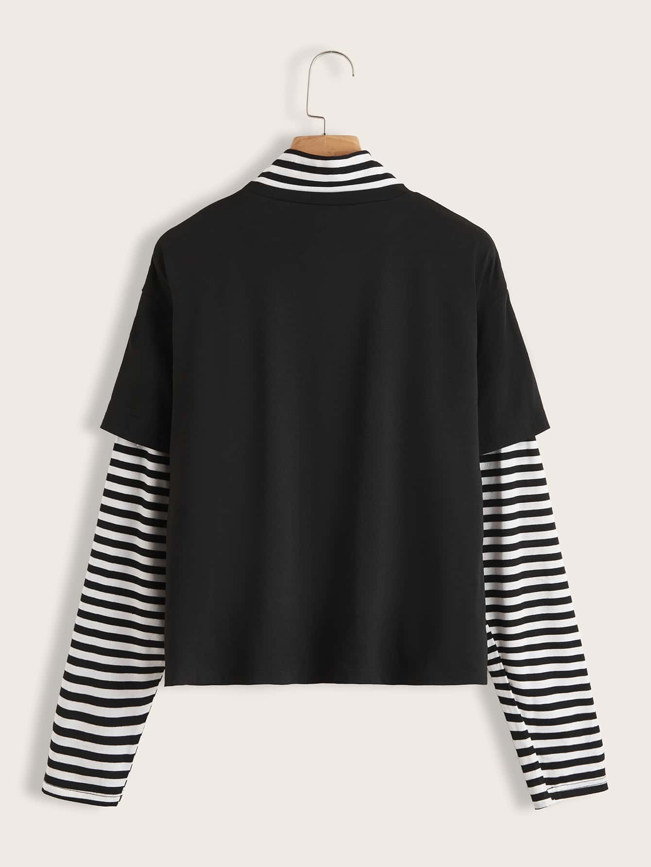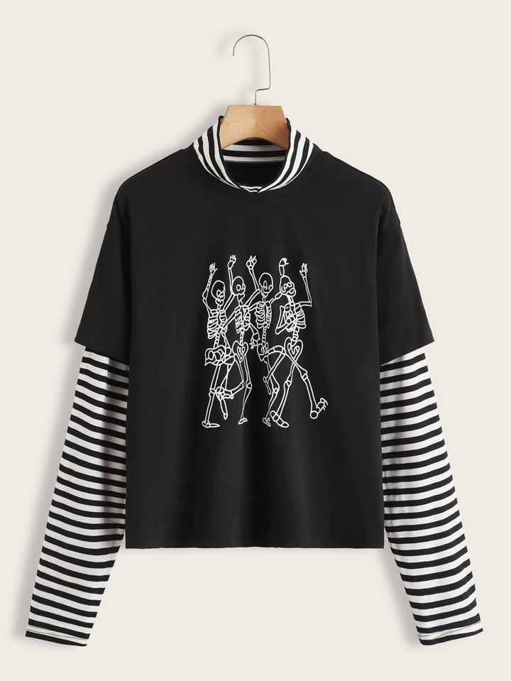 Camiseta 2 en 1 manga de rayas con estampado de cráneo