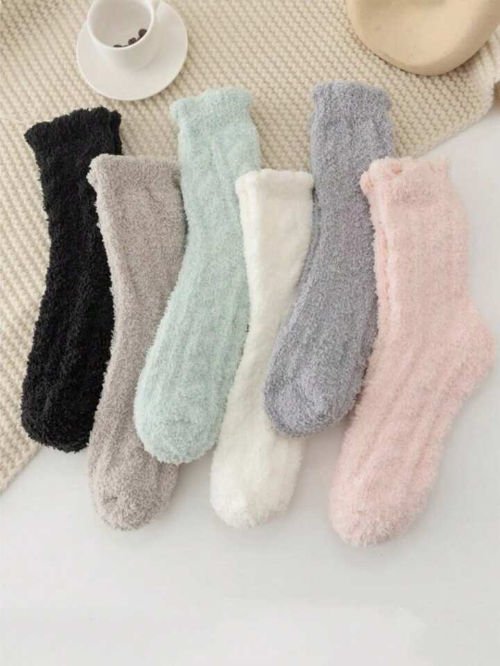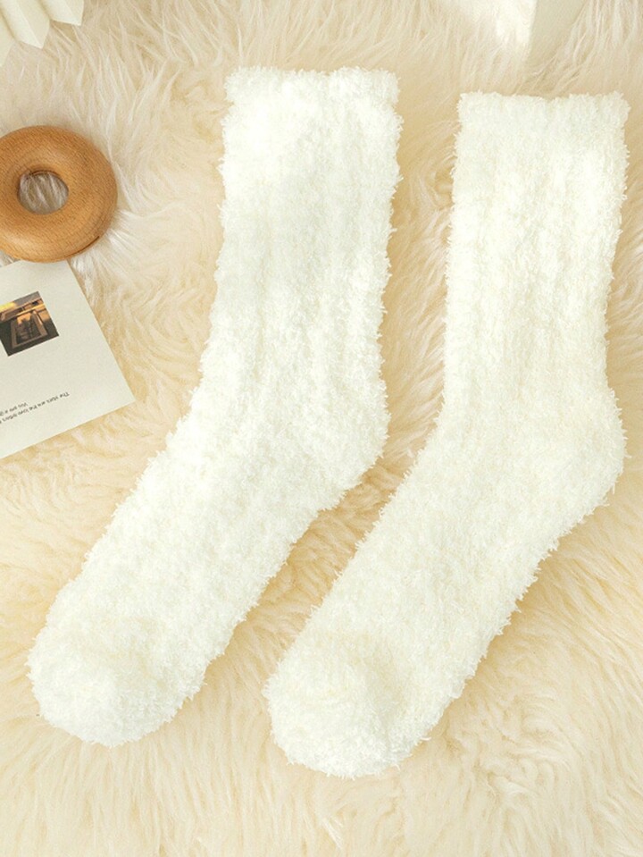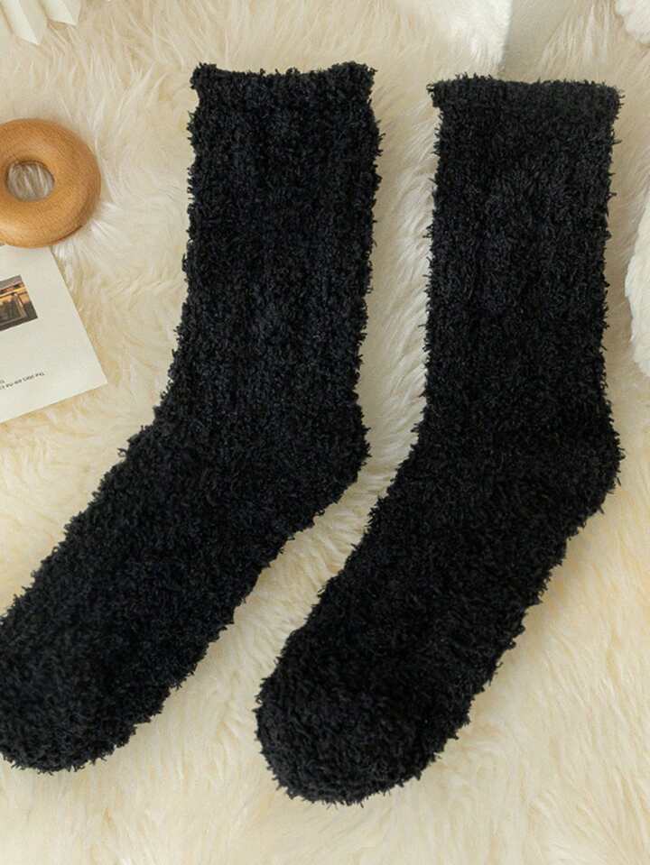 2 Pares De Calcetines A Media Pantorrilla De Terciopelo Coral Con Giro Aleatorio