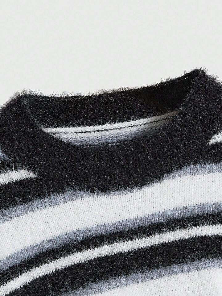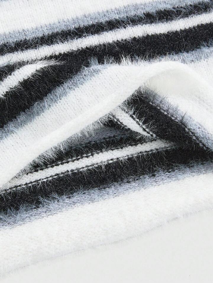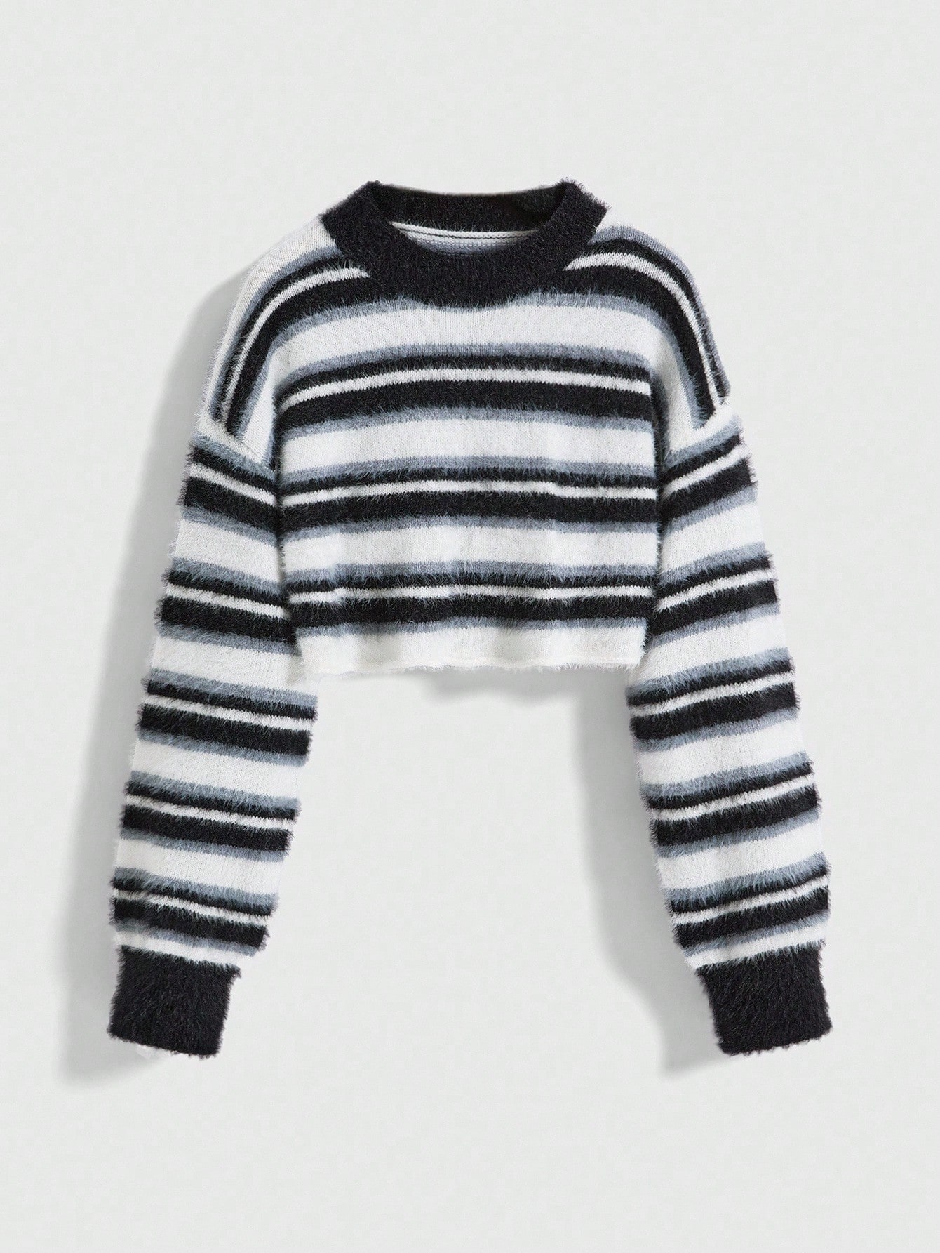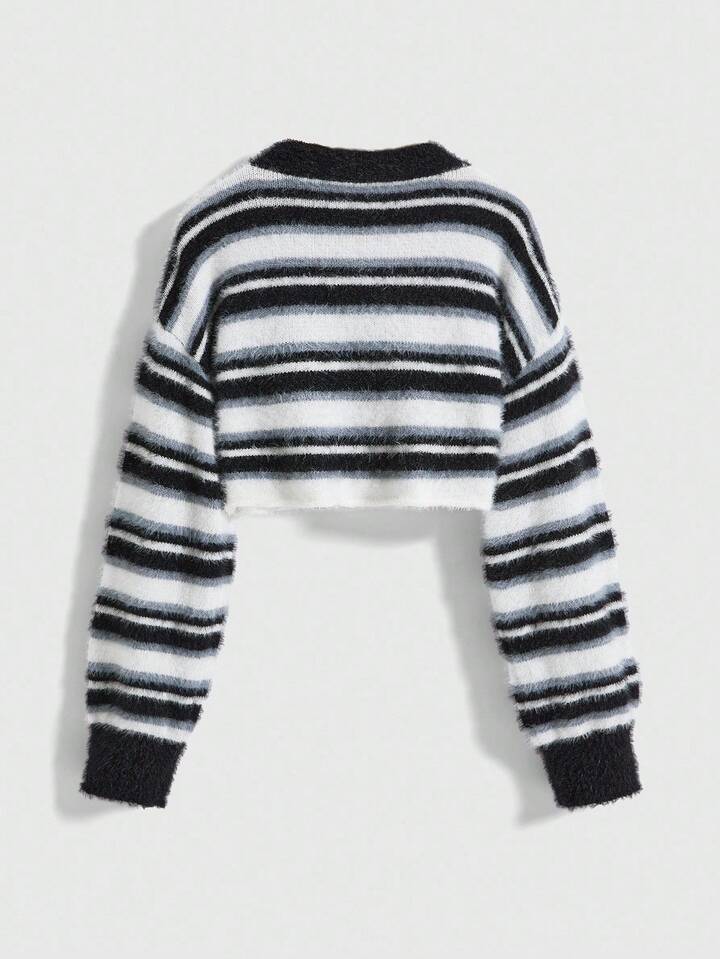 Jersey corto de terciopelo de imitación de visón a rayas para otoño/invierno 2025, top de punto suave de cintura alta que deja ver el ombligo para mujeres de moda