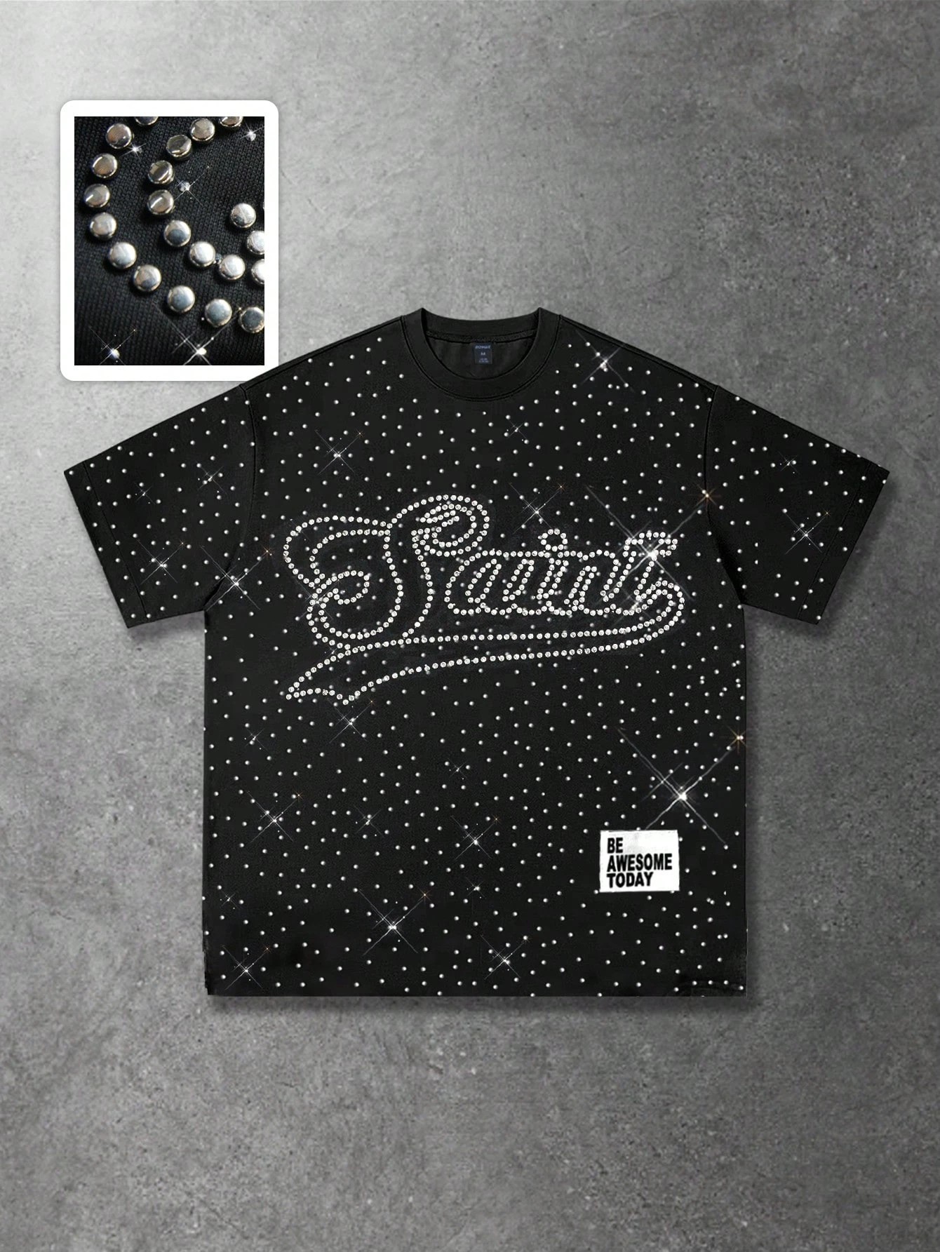 Camiseta de manga corta con adorno de rhinestones para hombres, diseño unisex de pareja de cuello redondo, primavera, otoño y verano 2026