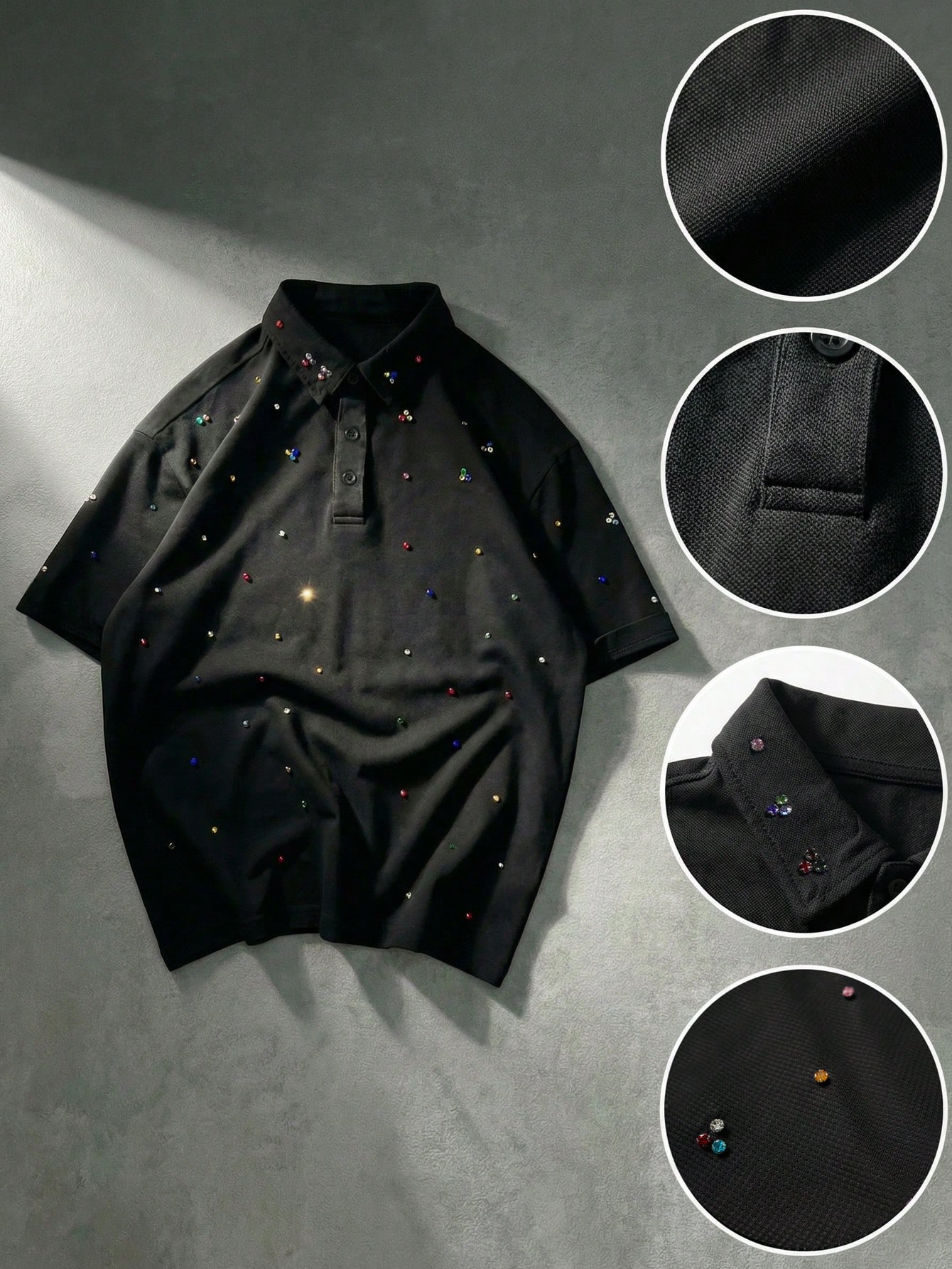 Camisa polo de hombre con cuentas gruesas para primavera, otoño y verano 2026, con cuello vuelto y manga corta, prenda exterior de moda casual y uso diario de verano