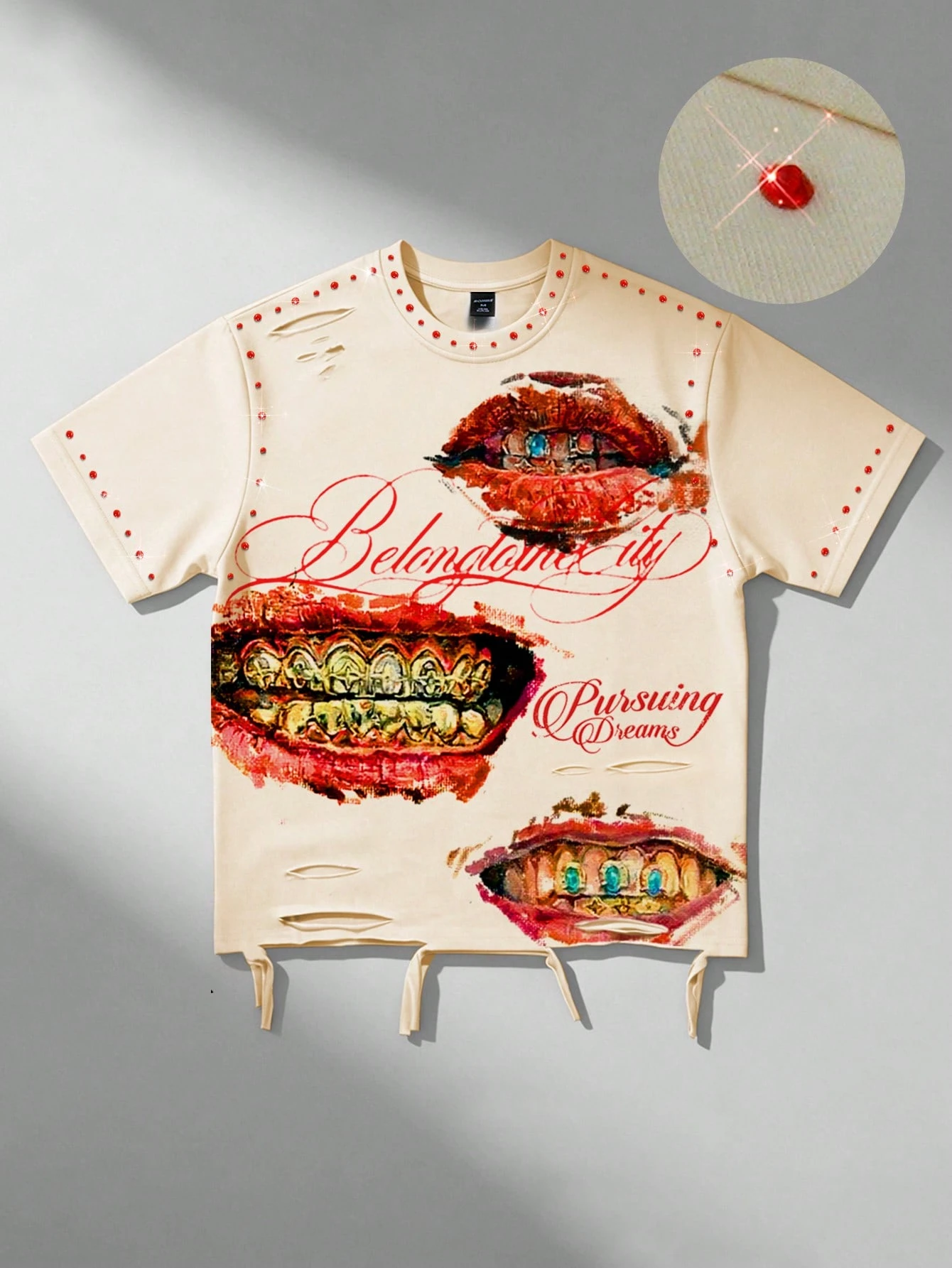2026 Nueva camiseta de verano estampada, camiseta de manga corta casual con adornos de strass de moda, camiseta unisex para parejas