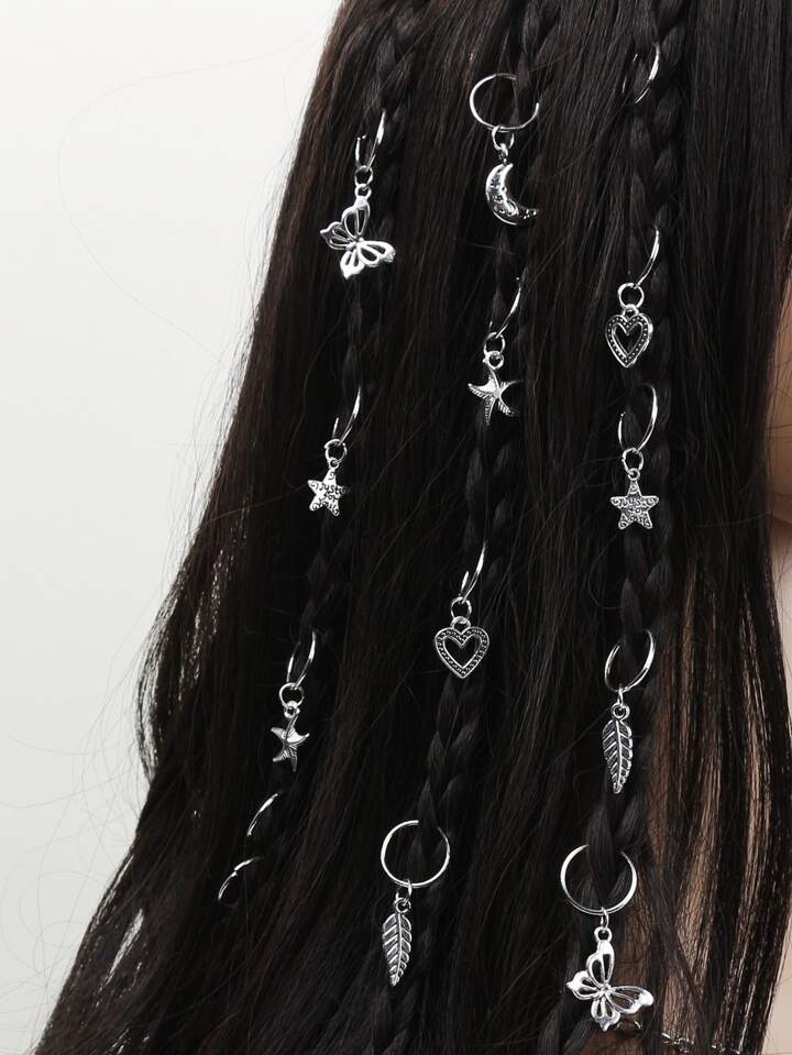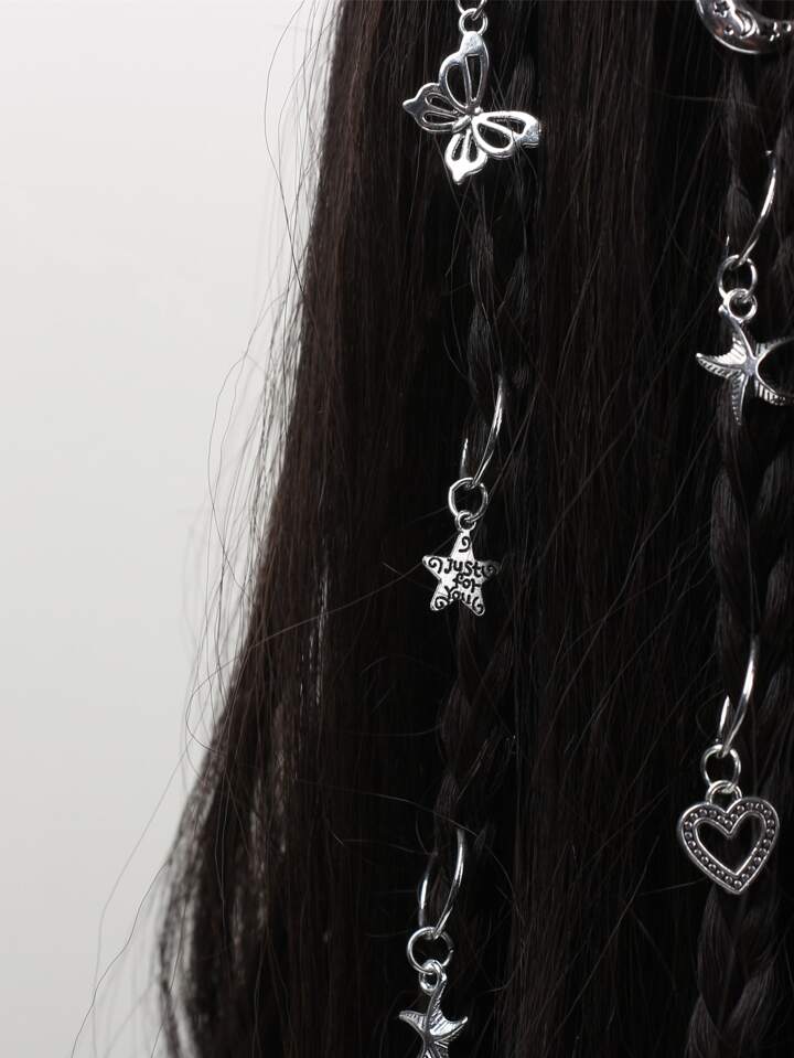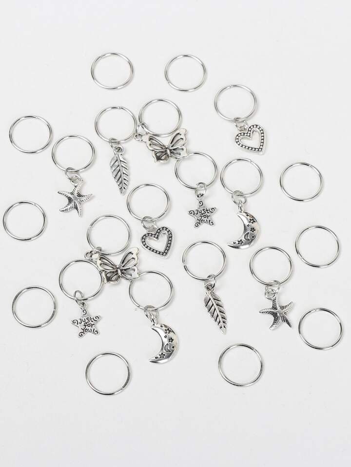 22 piezas de anillos para cabello con decoración de corazones, estrellas y mariposas