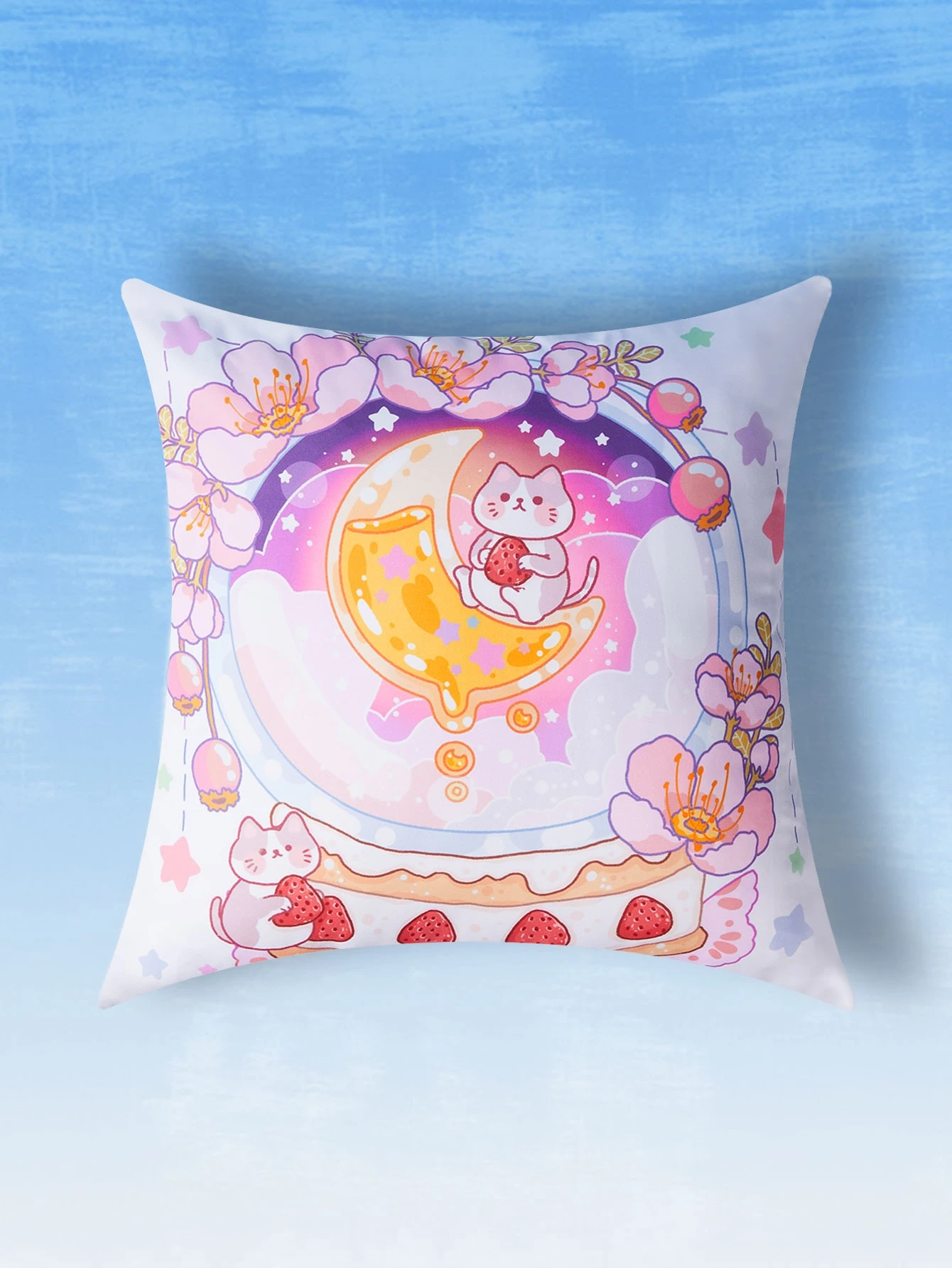 23Yueliang Funda de cojín sin relleno gato de dibujos animados & con estampado de luna