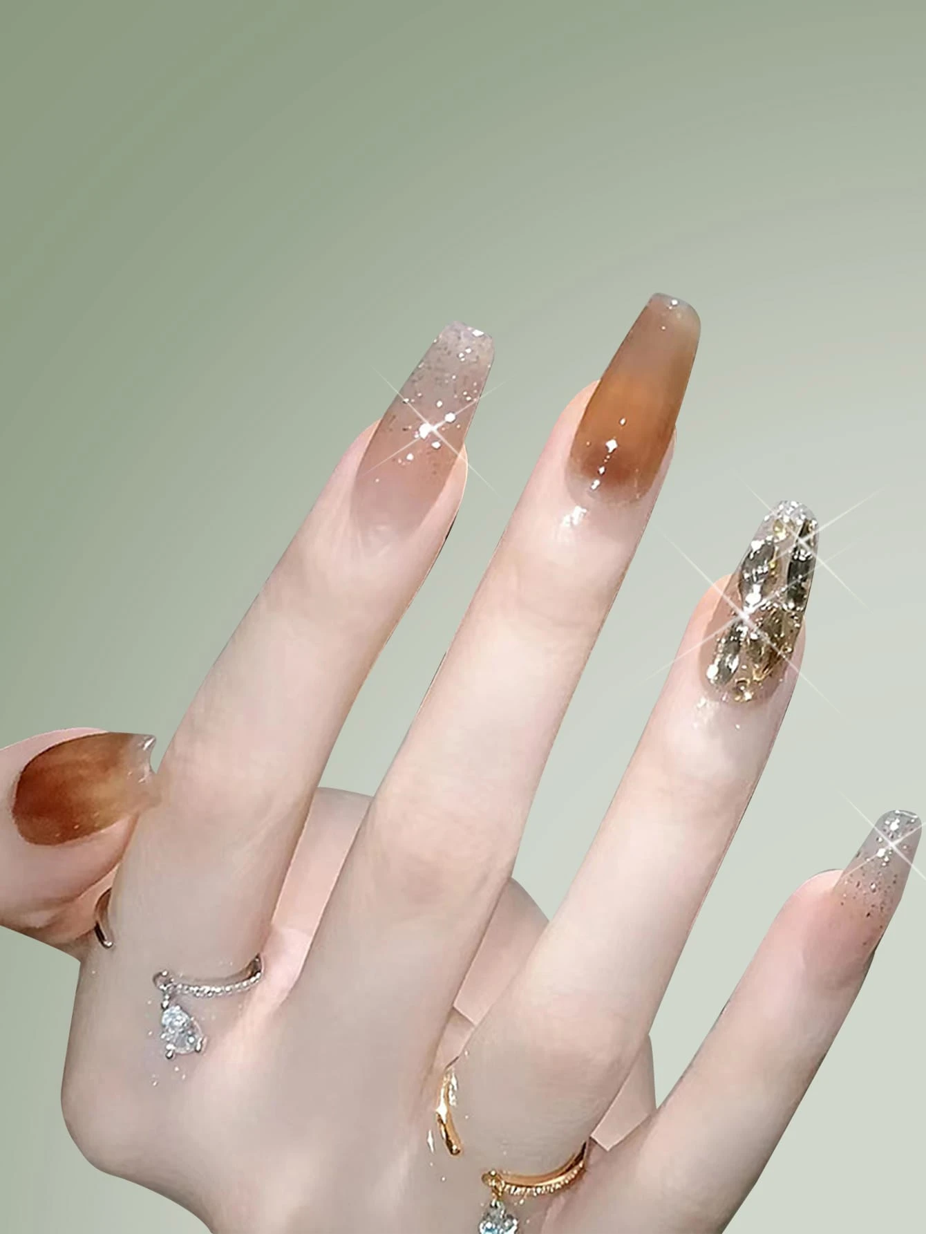 24 piezas ataúd 3d con diseño de diamante de imitación Uña postiza & 1 pieza lima de uñas & 1 hoja cinta