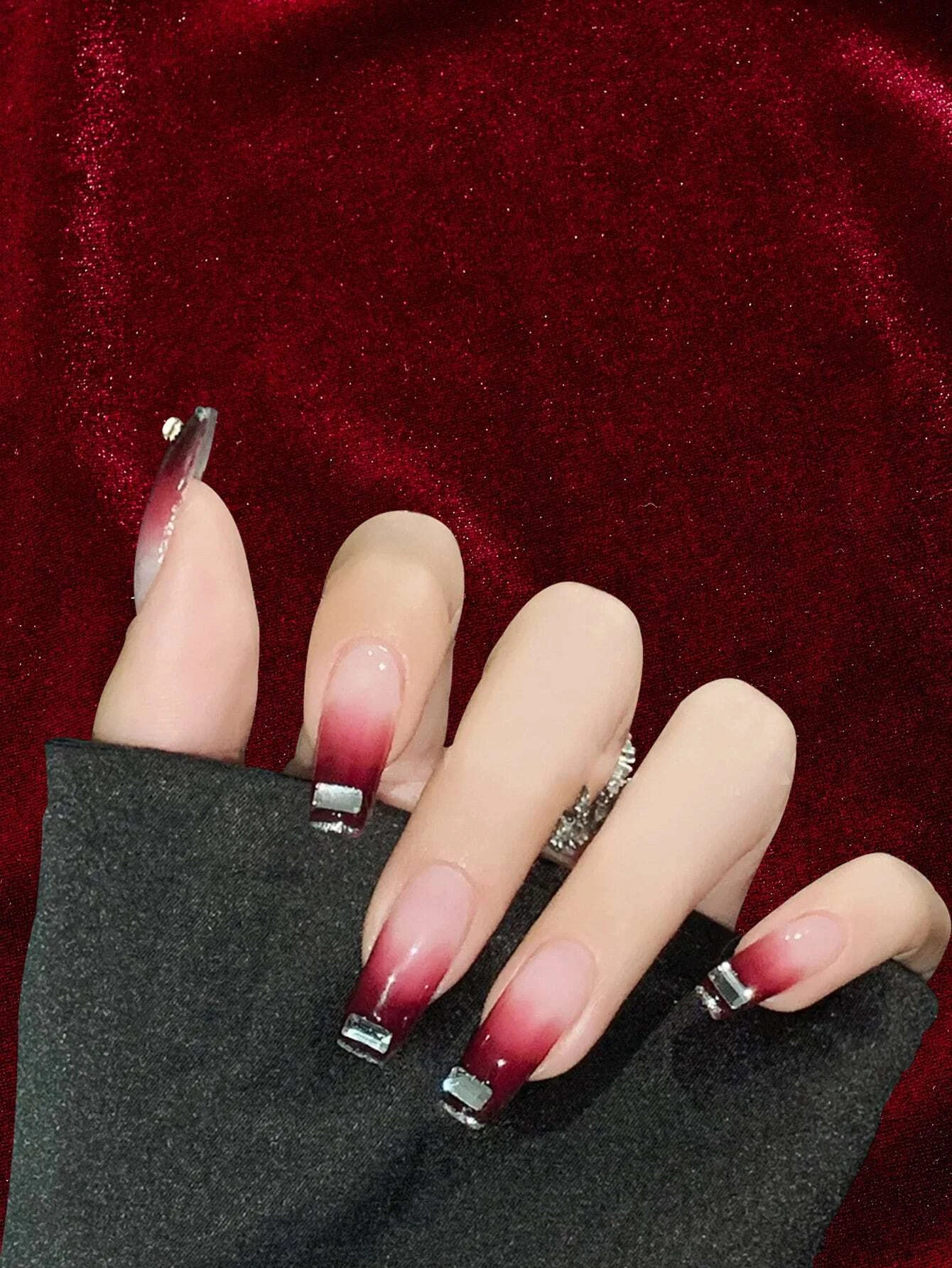 24 piezas ataúd de ombré Uña postiza & 1 hoja cinta