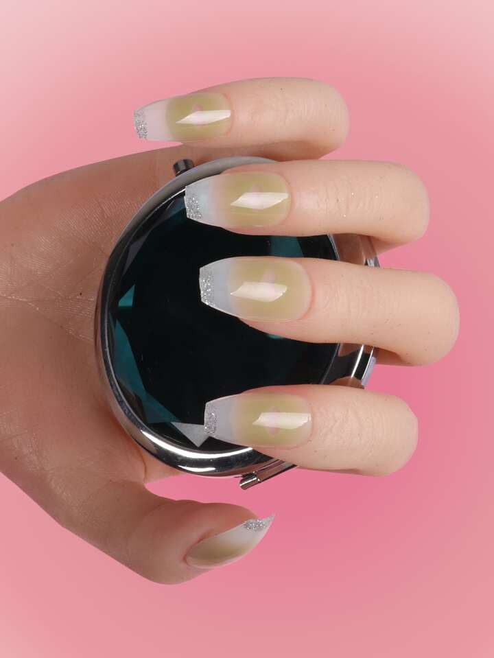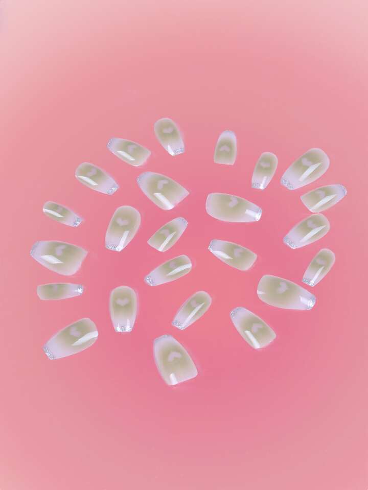 24 piezas Uña postiza largo ataúd con patrón de corazón & 1 hoja cinta
