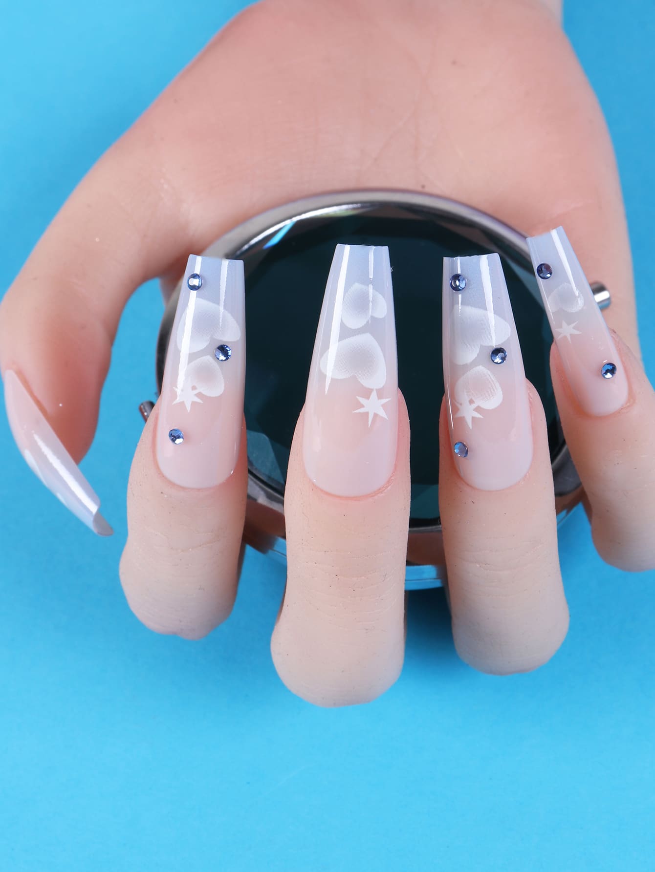 24 piezas largo ataúd con patrón de corazón Uña postiza & 1 hoja cinta