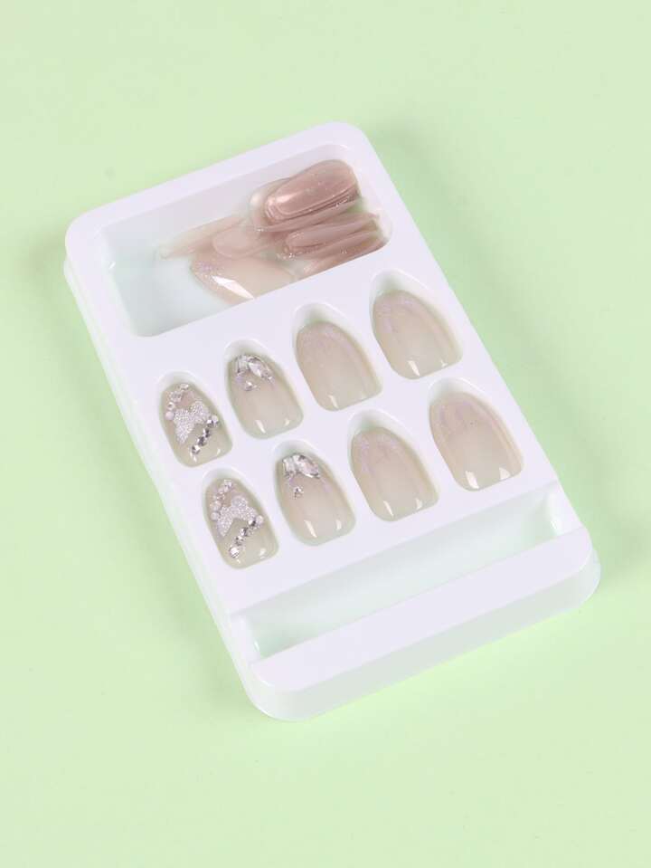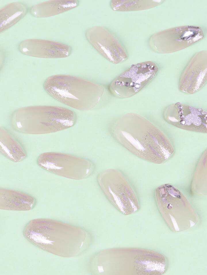24 piezas largo ataúd con diseño de diamante de imitación Uña postiza & 1 hoja cinta