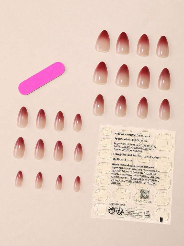 24 piezas Uña postiza largo de ombré & 1 hoja cinta & 1 pieza lima de uña