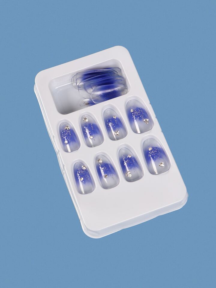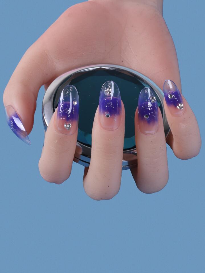 24 piezas Uña postiza largo oval con diseño de diamante de imitación de ombré & 1 hoja cinta