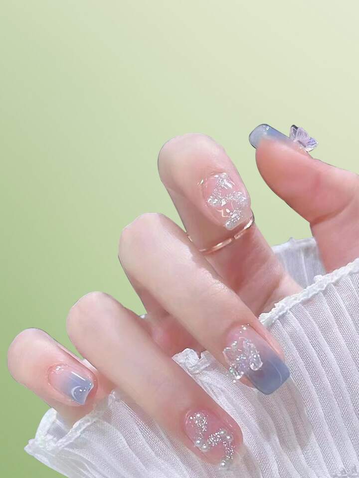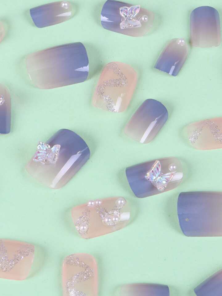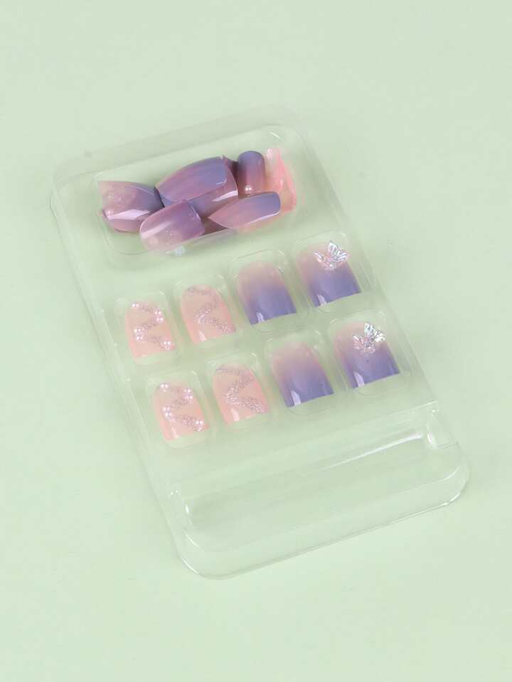 24 piezas largo cuadrado con diseño de perla artificial Uña postiza & 1 hoja cinta