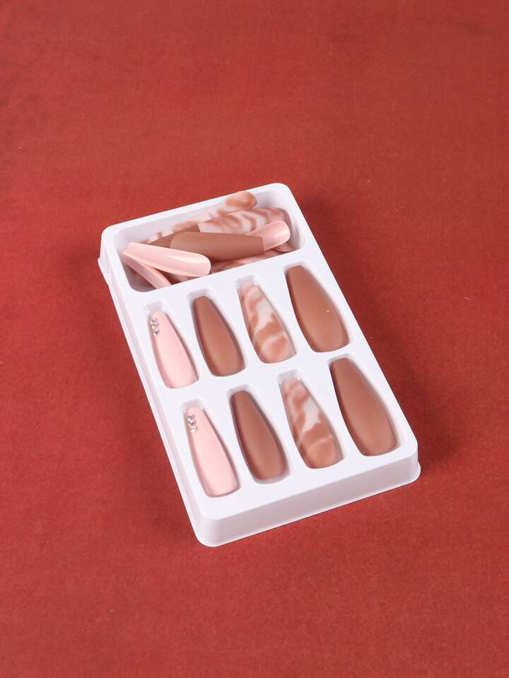 24 piezas largo cuadrado con diseño de diamante de imitación Uña postiza & 1 hoja cinta