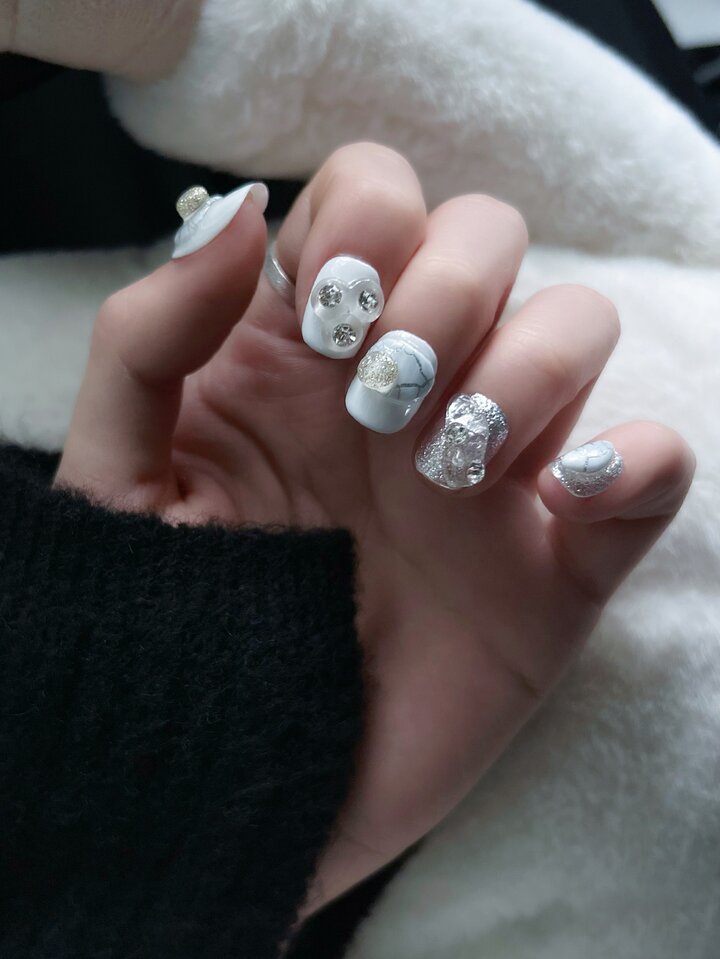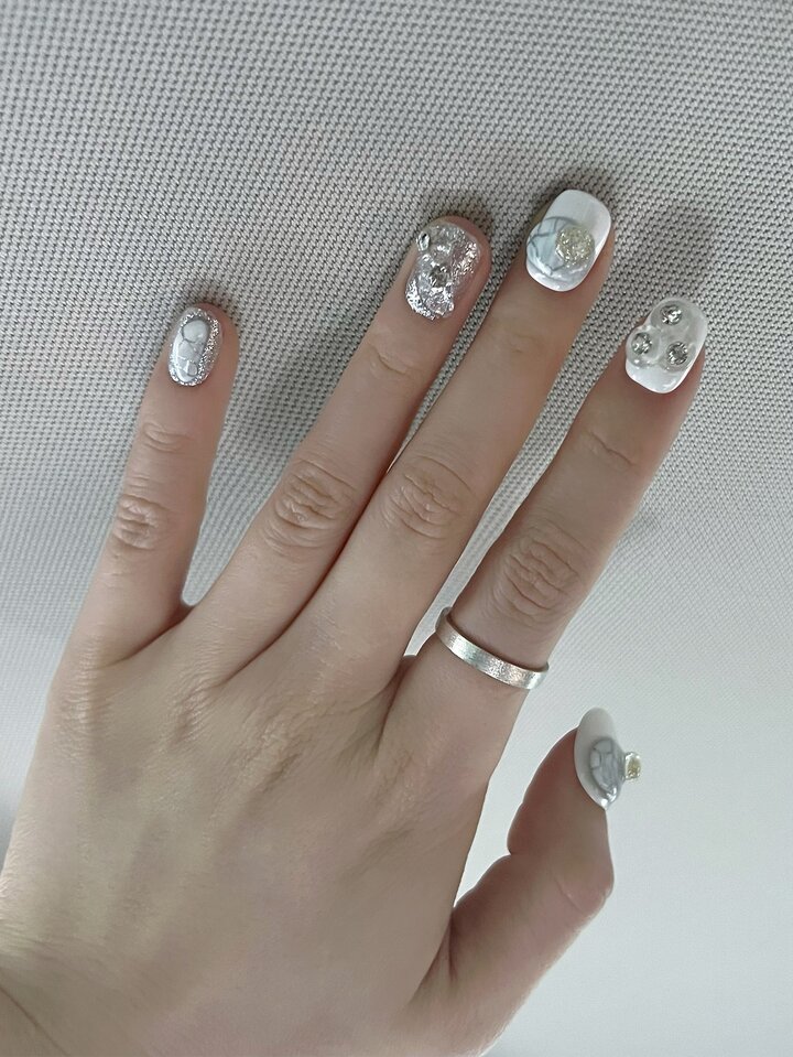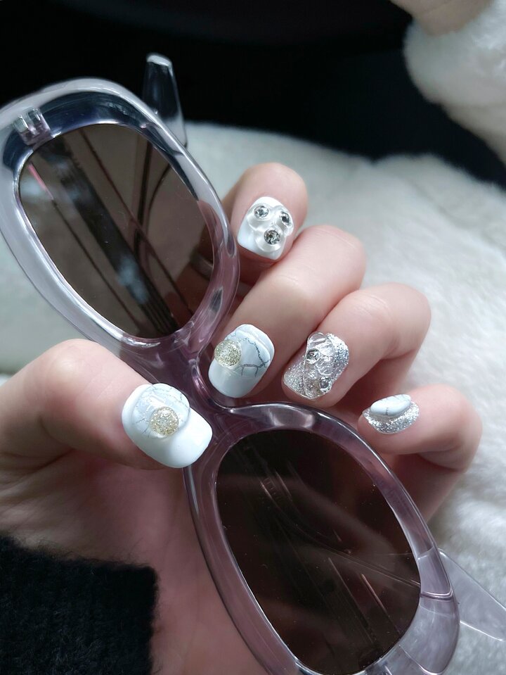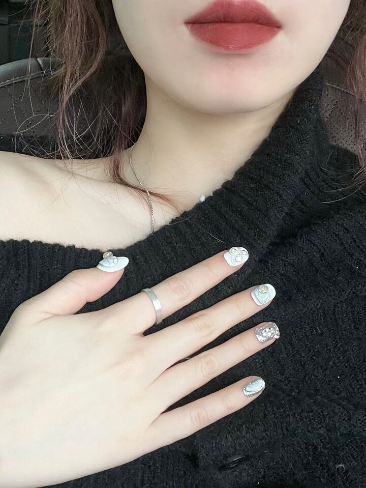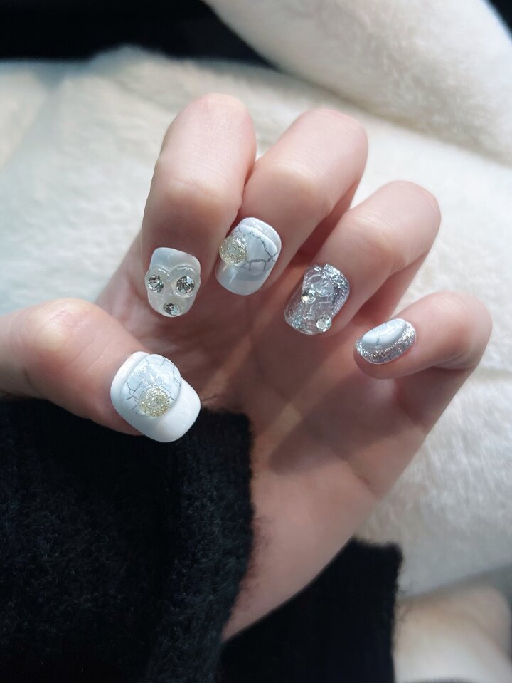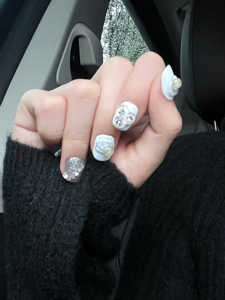 24 piezas corto cuadrado 3d con diseño de diamante de imitación Uña postiza & 1 hoja cinta
