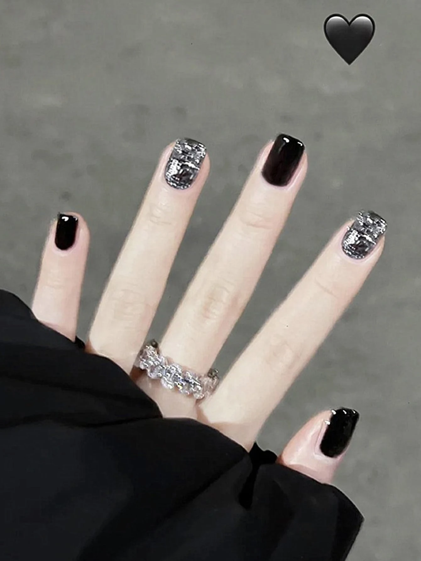 24 piezas corto cuadrado brillante Uña postiza & 1 pieza lima de uñas & 1 hoja cinta