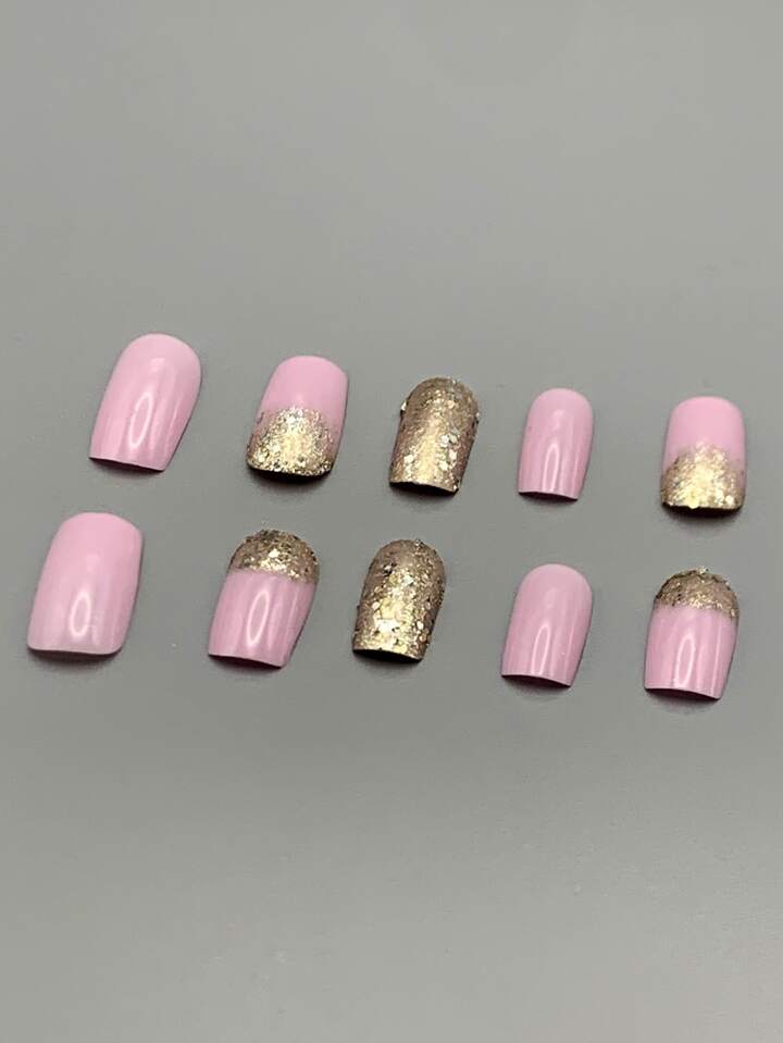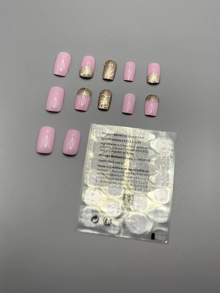 24 piezas corto cuadrado con lentejuelas Uña postiza & 1 hoja cinta