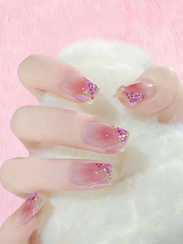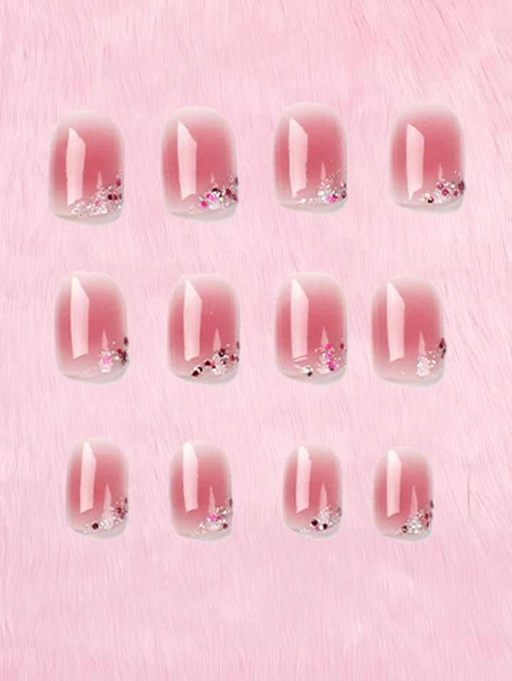 24 piezas cuadrado 3d con diseño de diamante de imitación Uña postiza & 1 hoja cinta