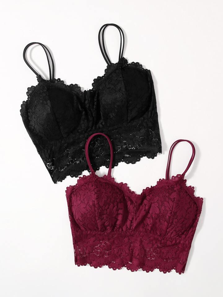 Set de 2 sujetadores tipo bralette longline con encaje floral
