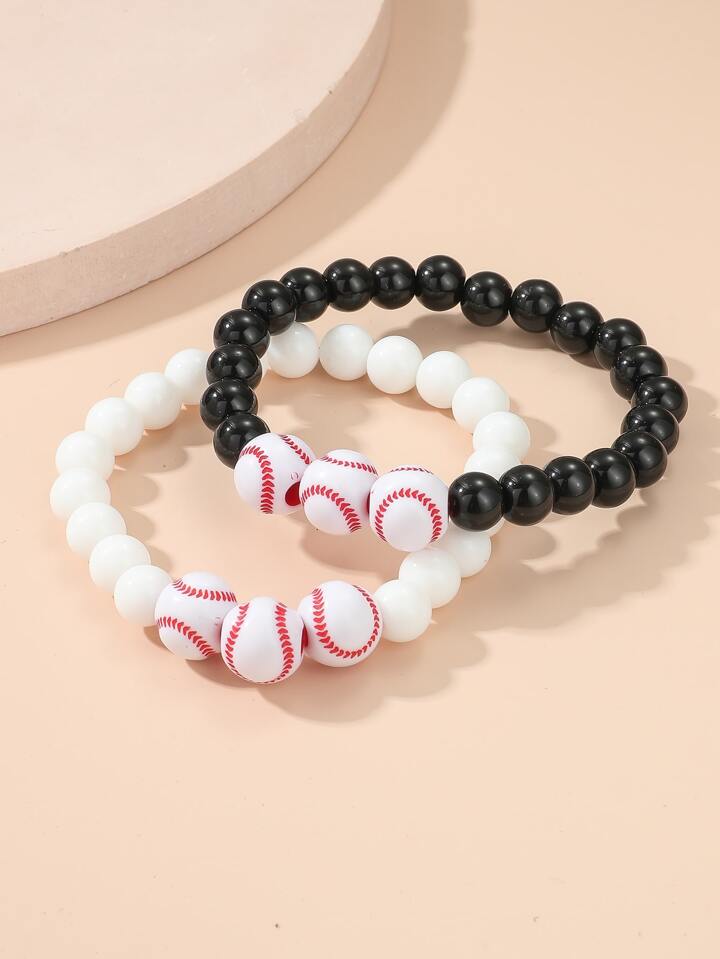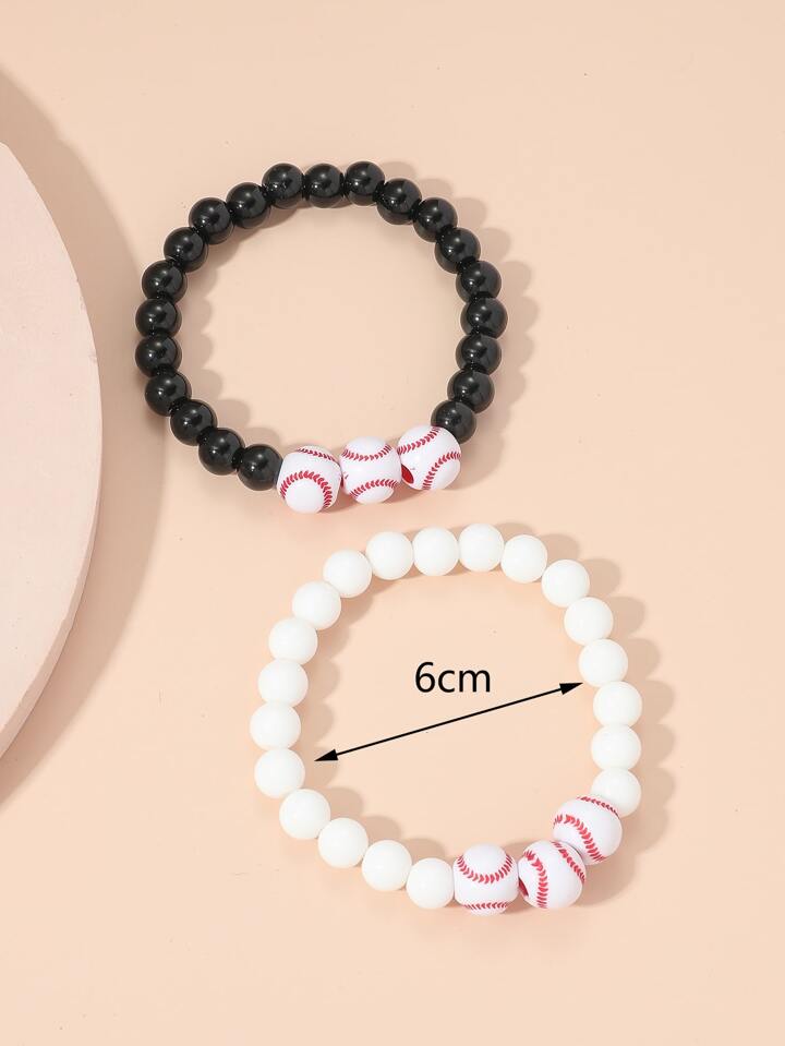 2 piezas Pulsera con cuenta pareja béisbol