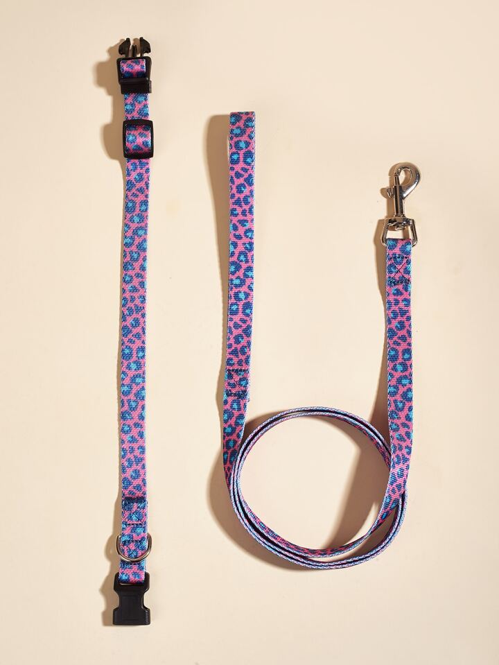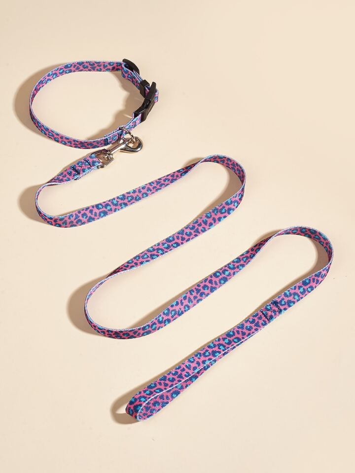2 piezas con estampado de leopardo Collar para mascota & Correa Conjunto