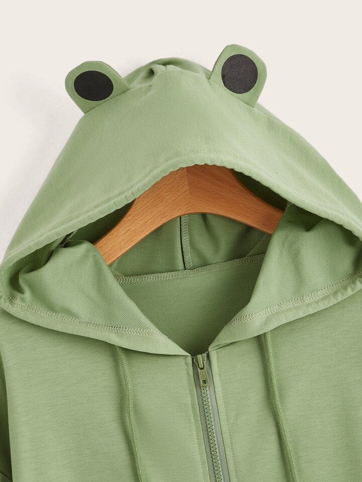 Capucha oreja 3D con cremallera con bolsillo con cordón