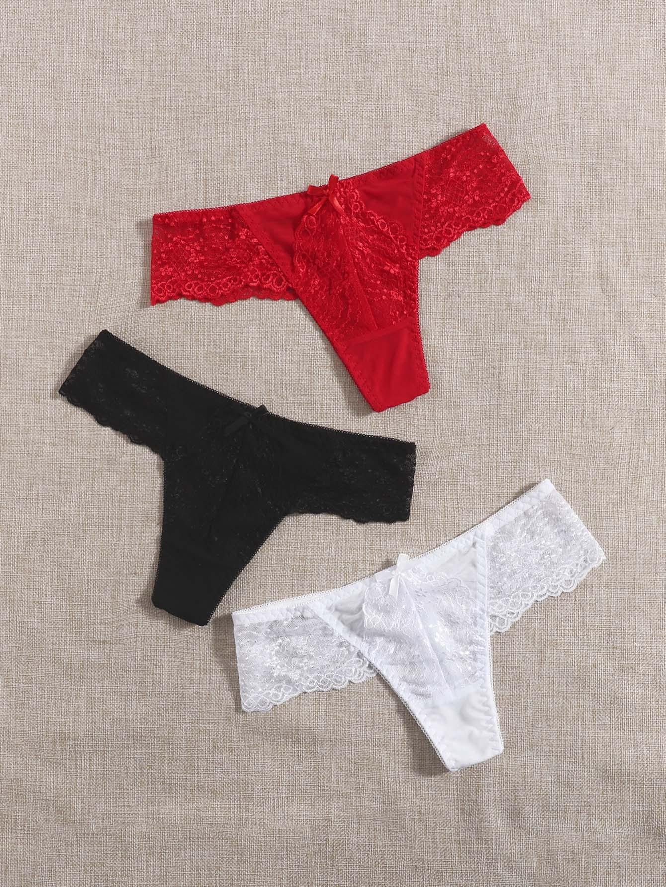 3 piezas Set bragas con encaje en contraste