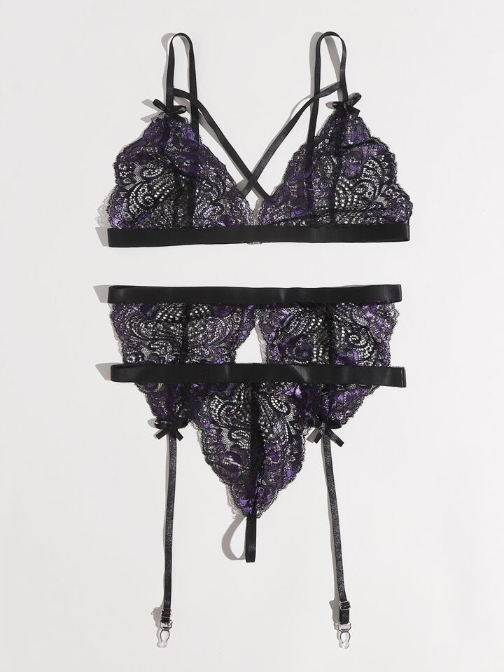 Conjunto De Lencería De Encaje Con Liguero De 3 Paquetes