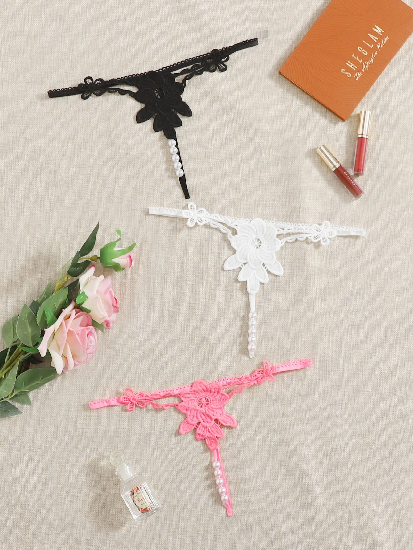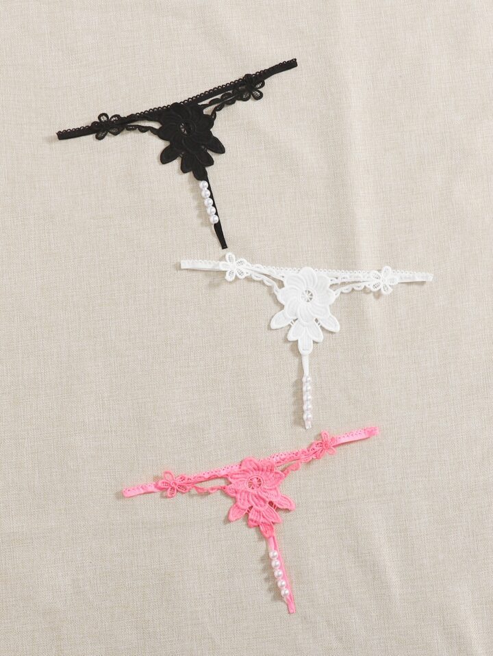 3 piezas set tanga con perla artificial