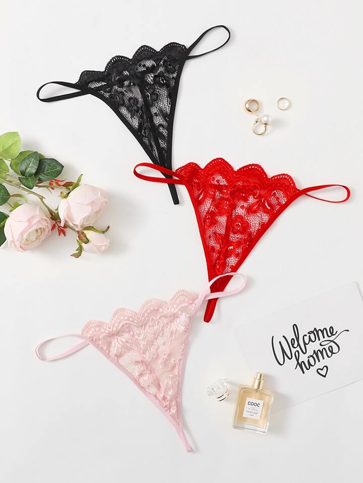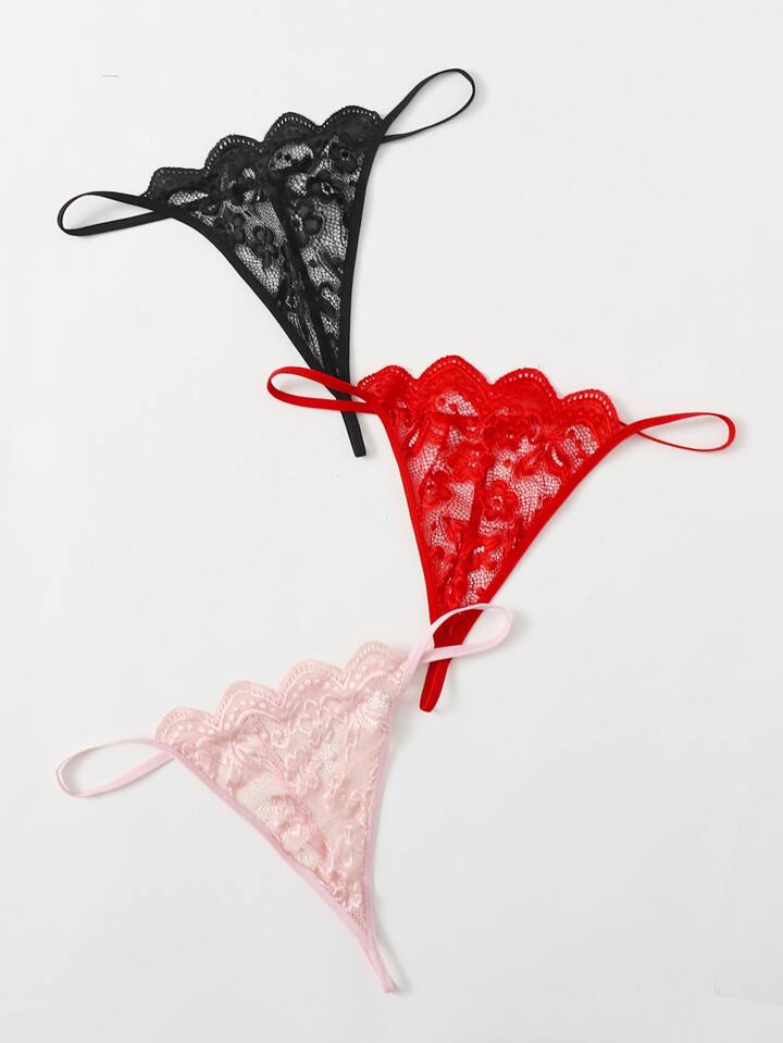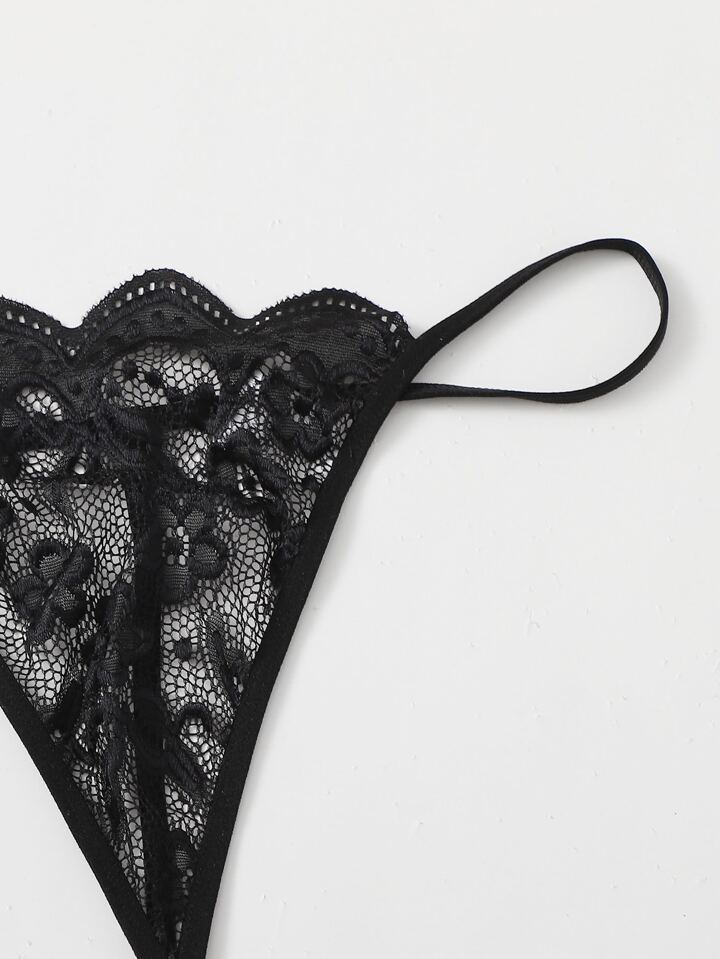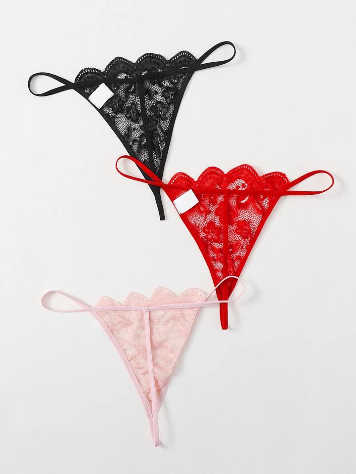 3 piezas set tanga ribete en abanico con encaje floral
