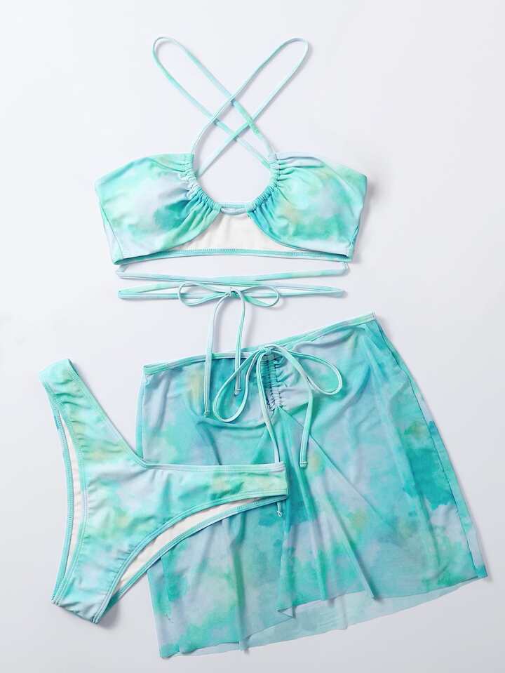 3 paquetes de bikini anudado teñido con cordón y con prenda de cubierta