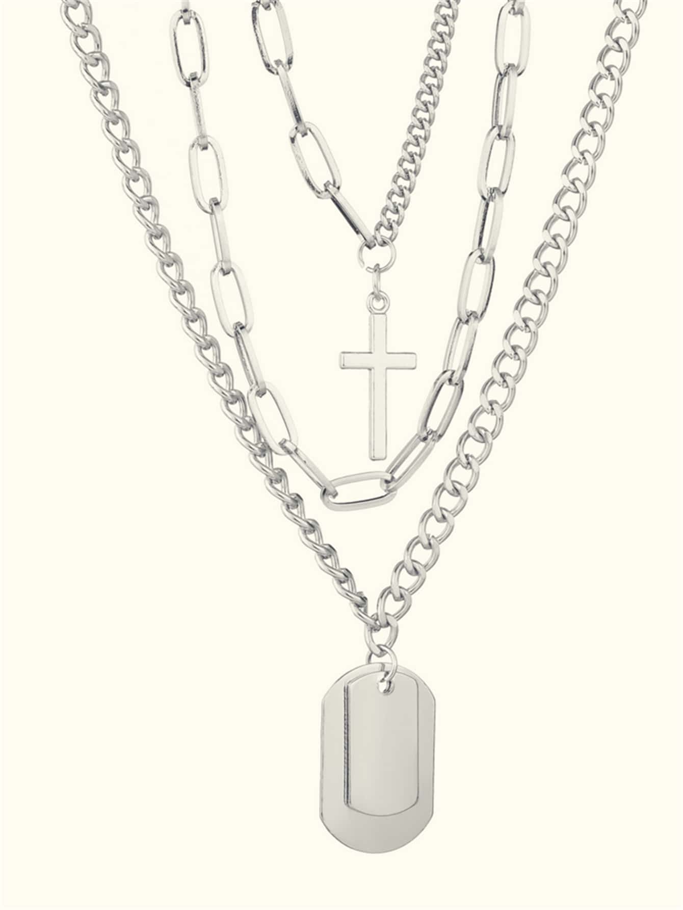 3 piezas collar de hombres con cruz