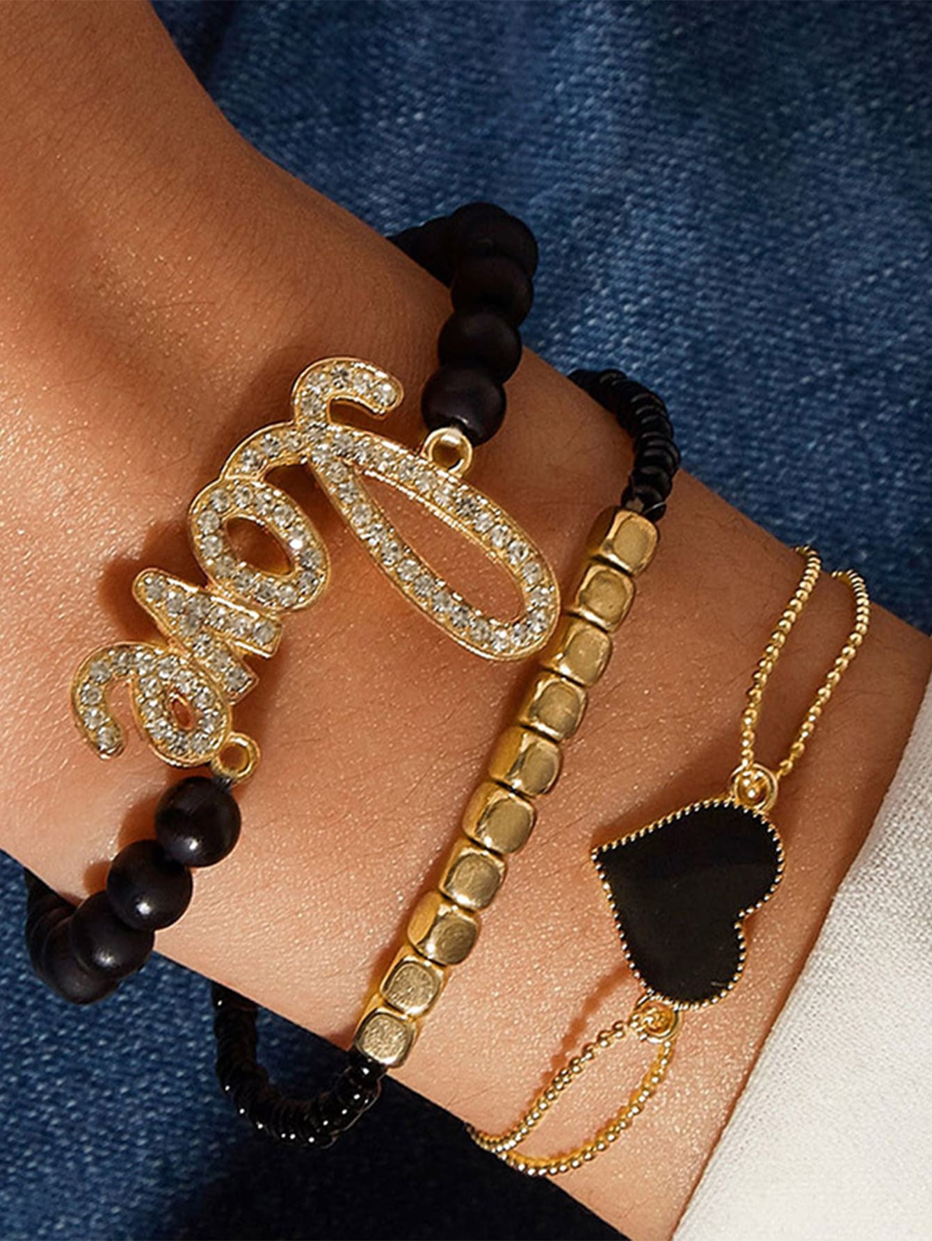 3 piezas Pulsera con cuenta con adorno de corazón