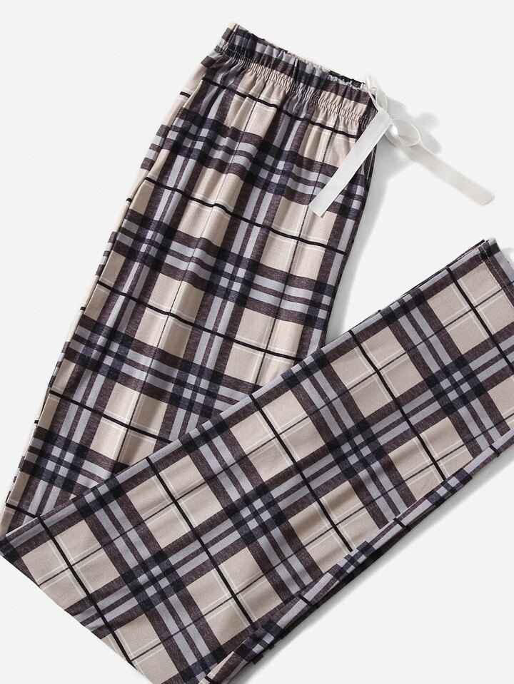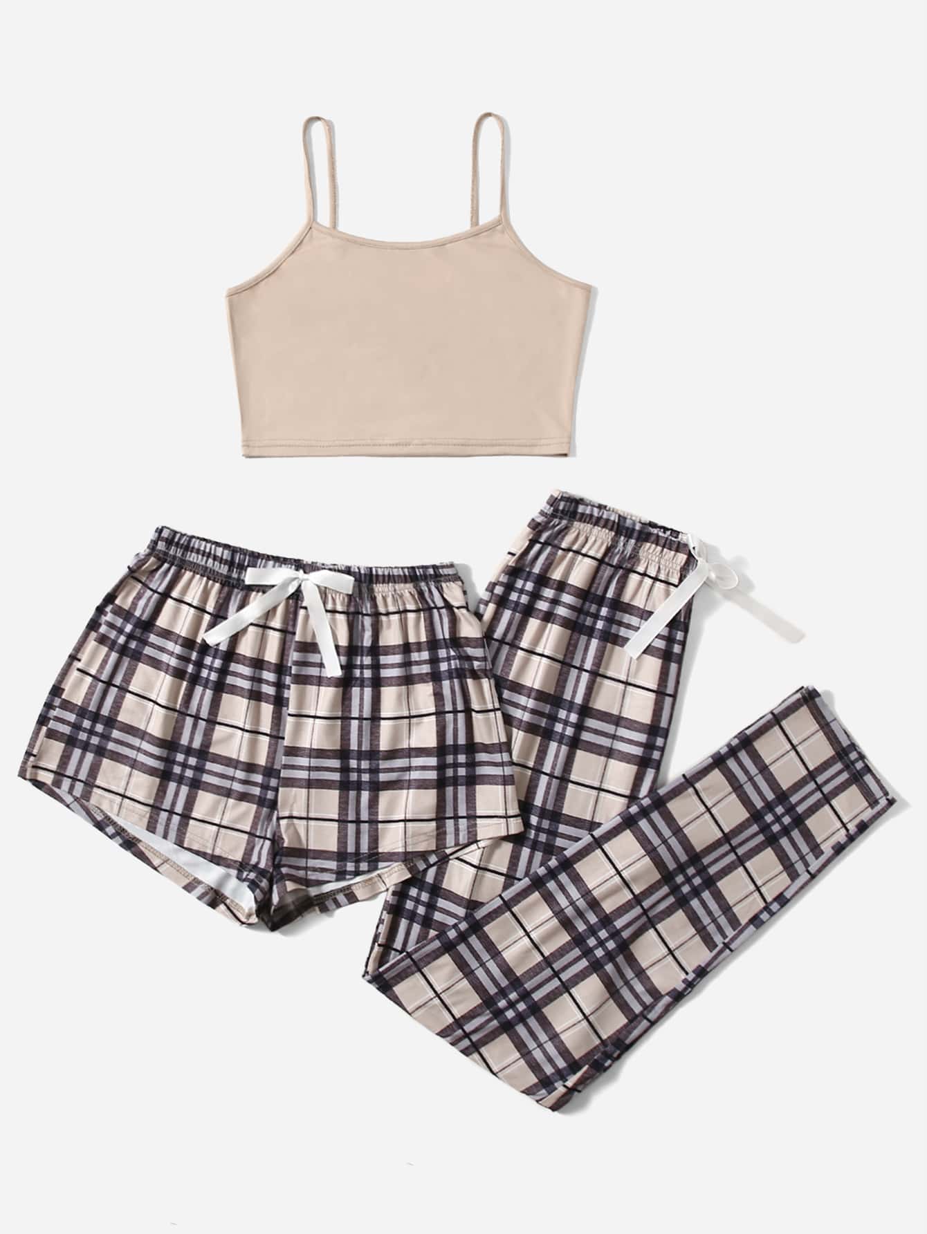 3 piezas Conjunto de pijama con top con nudo y estampado de cuadros