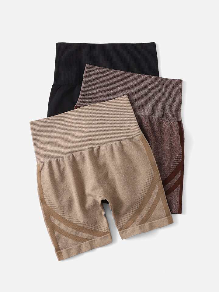 3 piezas Shorts deportivos de color combinado tejido de canalé