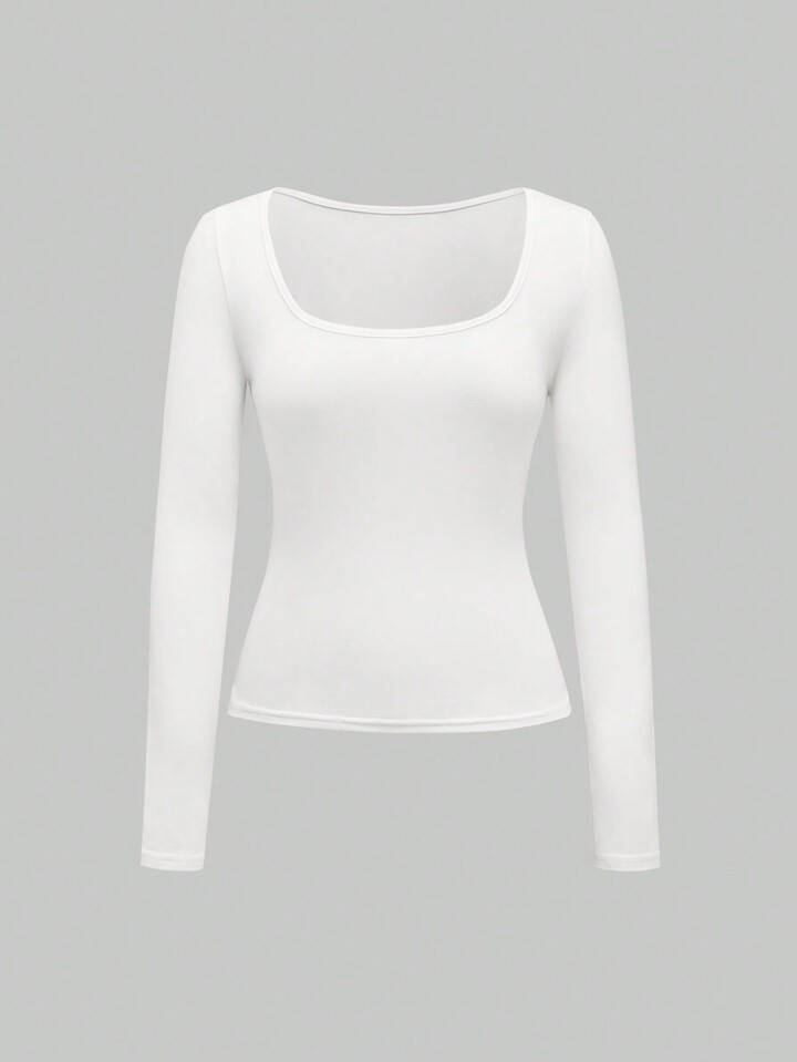 Set de 3 camisetas interiores de manga larga de unicolor informal para niñas, versátil