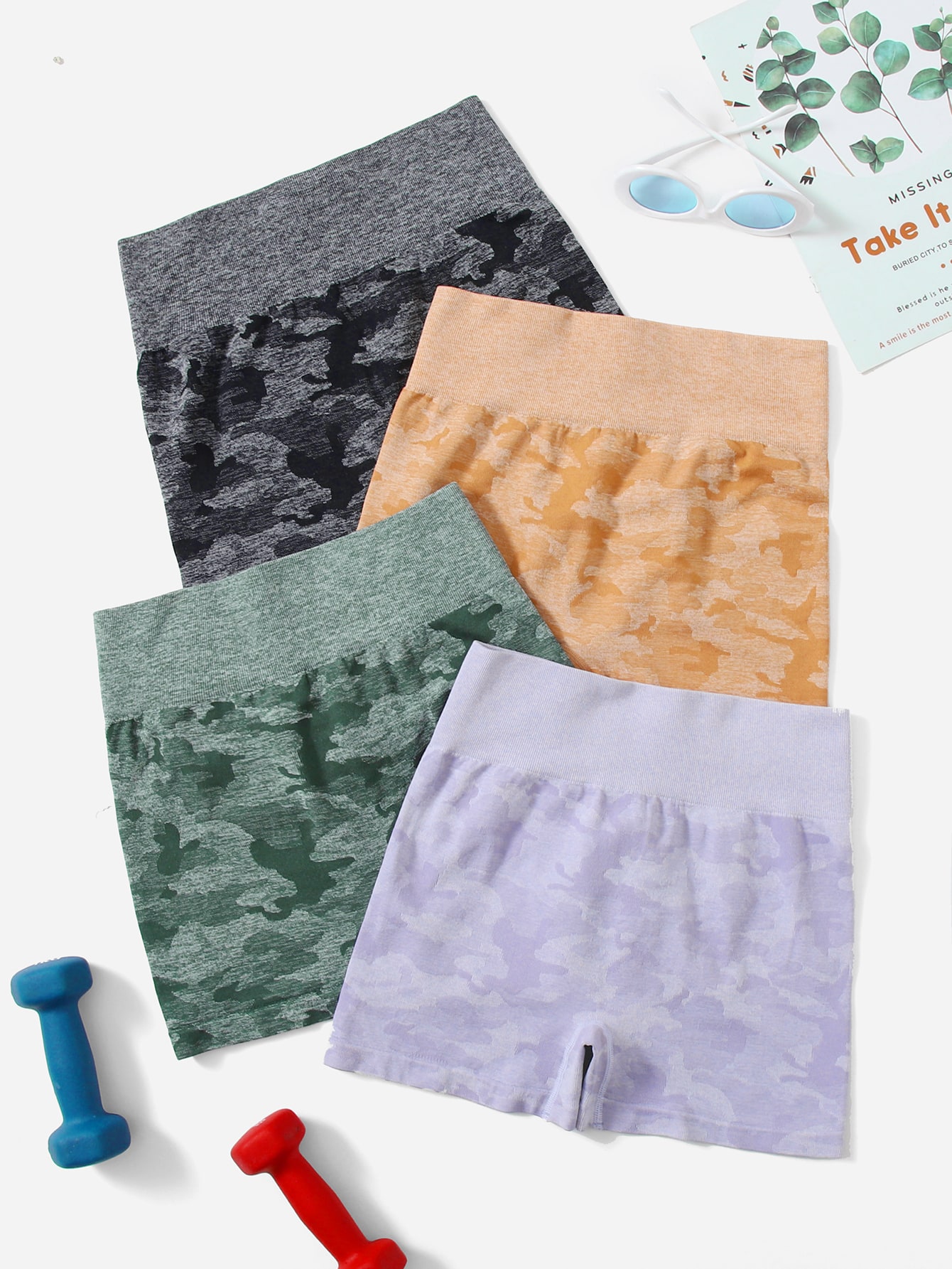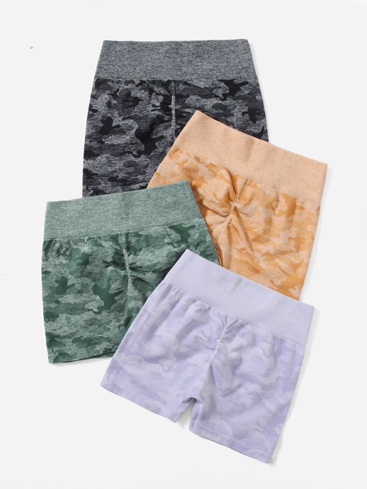 4 piezas Shorts deportivos con estampado de camuflaje inconsútil