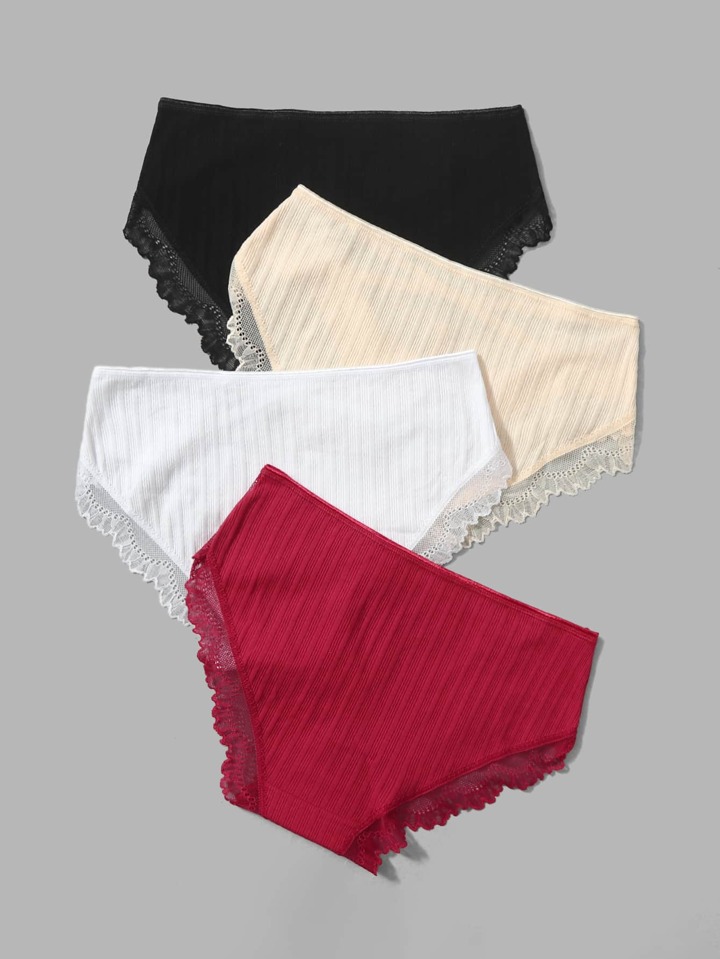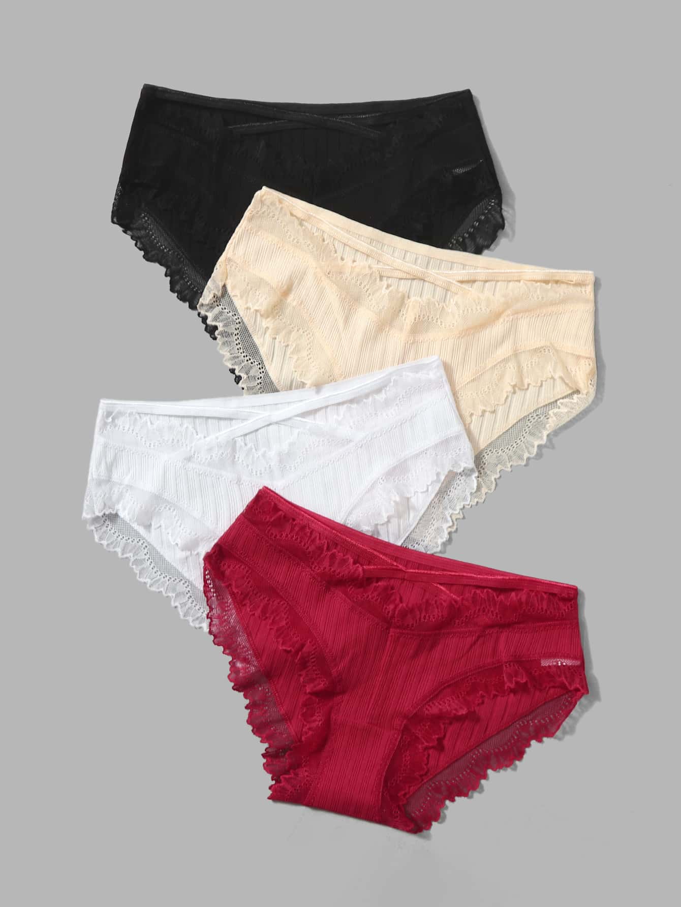 4 piezas Set bragas con encaje en contraste con tira cruzada