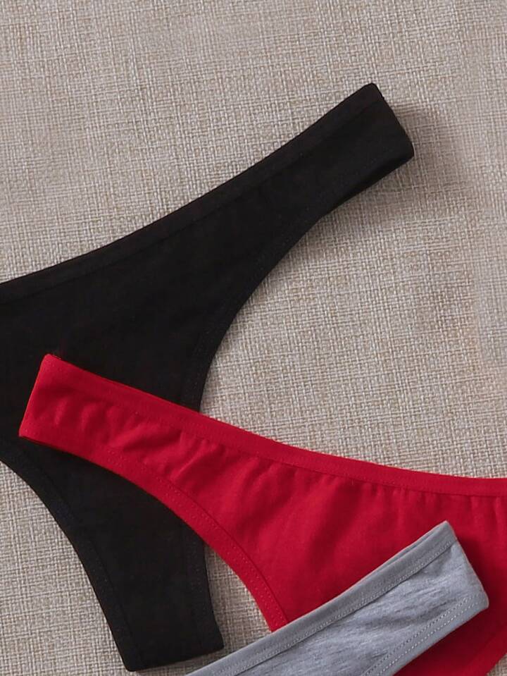 Bragas tipo tanga de tela lisa y casual con estiramiento medio en paquete multicolor para mujeres