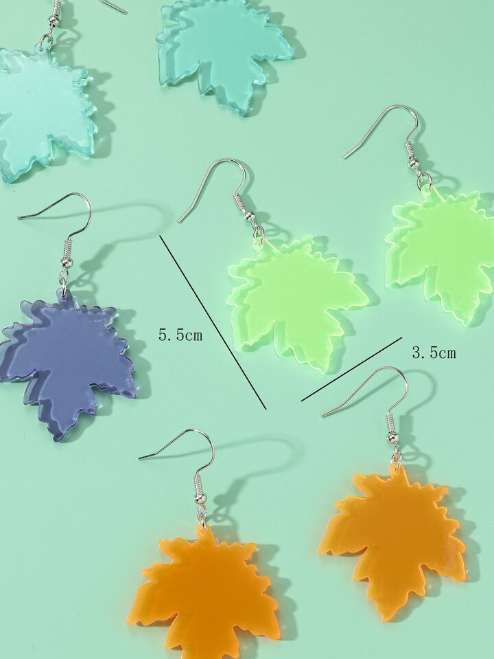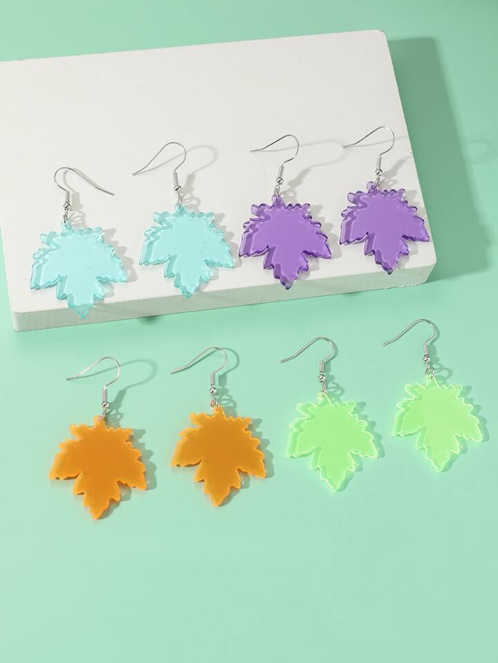 4 pares Pendientes largos hoja de arce