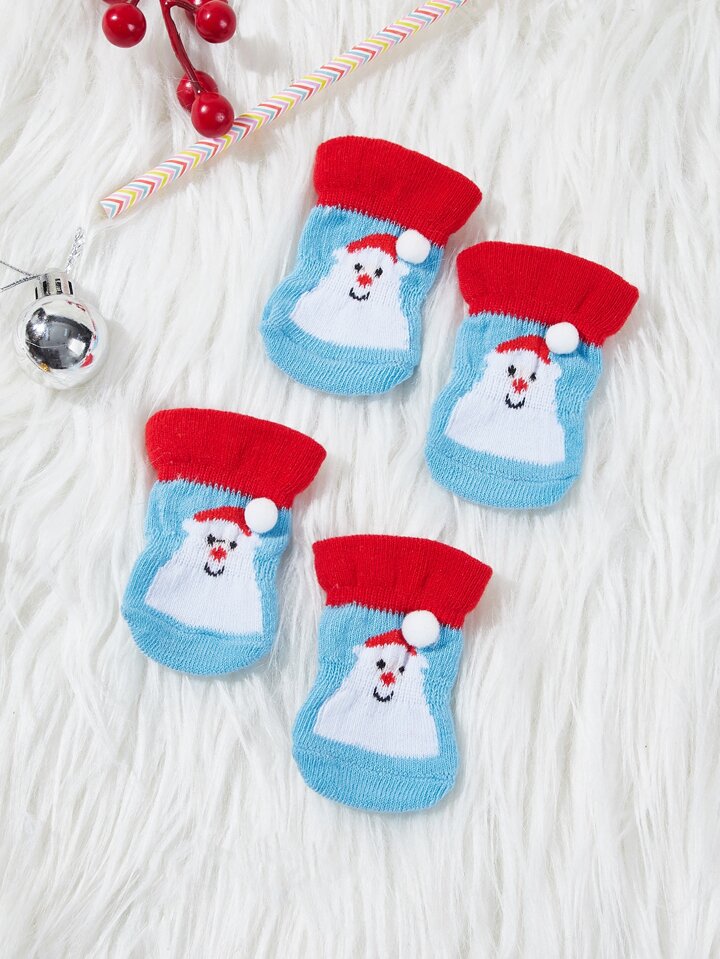 4 piezas Calcetines Navidad con estampado de dibujos animados de mascota
