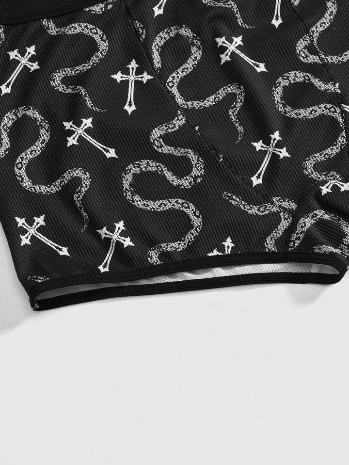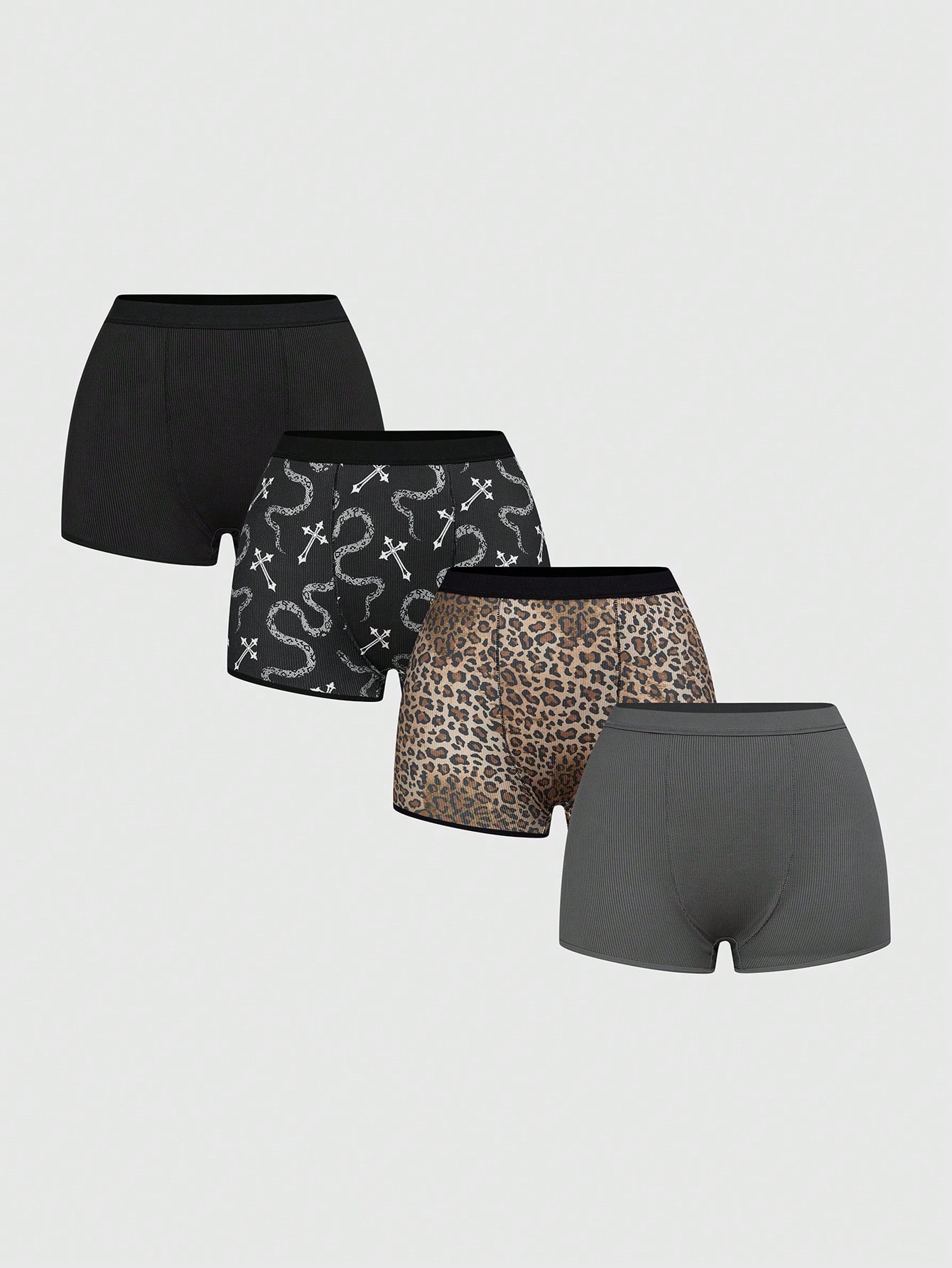 Goth Set de 4 boxers tipo bóxer de hombre con diseños de cruces góticos, patrón de piel de serpiente y estampado de leopardo
