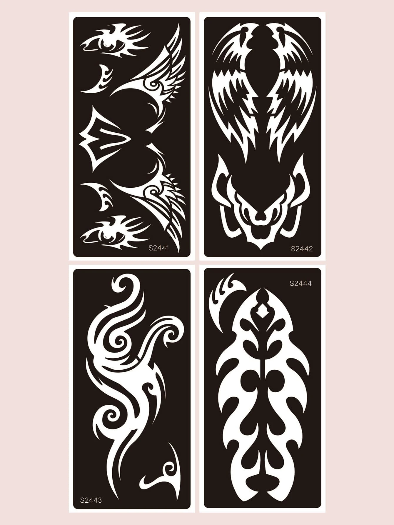 4 hojas Plantilla de tatuaje con estampado