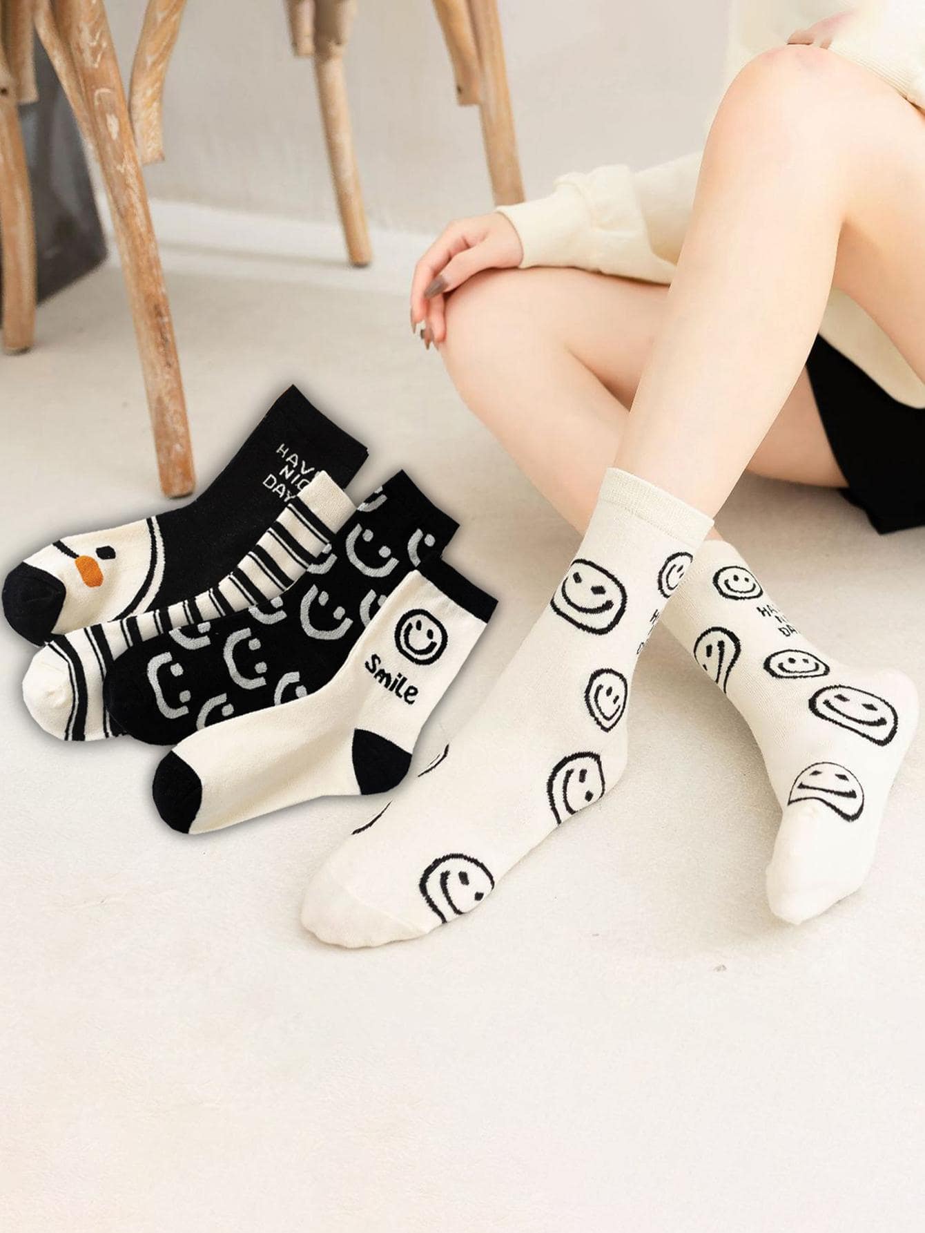 5 pares Calcetines de tripulación con estampado de dibujos animados