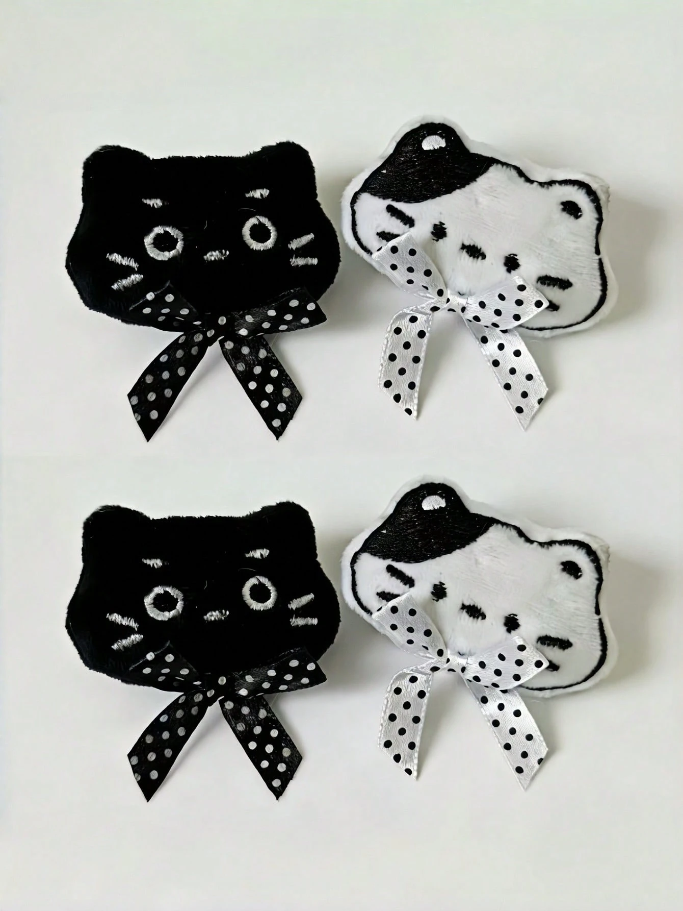 5 piezas Alas de ángel de gato kawaii rosa y blanco, Clips para el cabello con estampado a rayas retro simple, lunares y bordado de garra de gato, Conjunto de accesorios para el cabello de estilo anime, Excelente para regalos