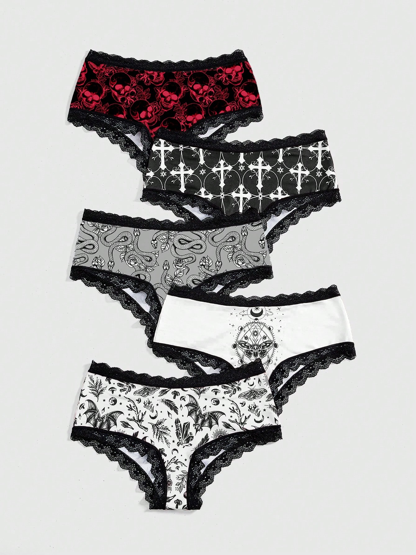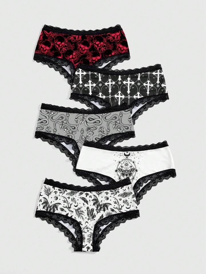 Goth Set de 5 bóxers con patrones de calavera, mariposa, polilla, cruz y serpiente, en estilo gótico