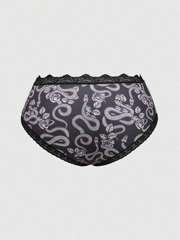 Goth Set de 5 bragas talla grande de estilo gótico oscuro con diseño de encaje, parches, cintura, patrón de piel de serpiente, rosa, calavera, cruz y mariposa