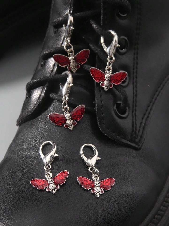 Set de 5 piezas de decoración de zapatos con diseño de polilla en estilo vintage punk, para Halloween
