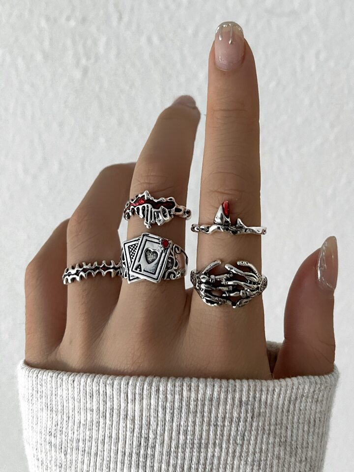 5 piezas Anillo con diseño de cráneo