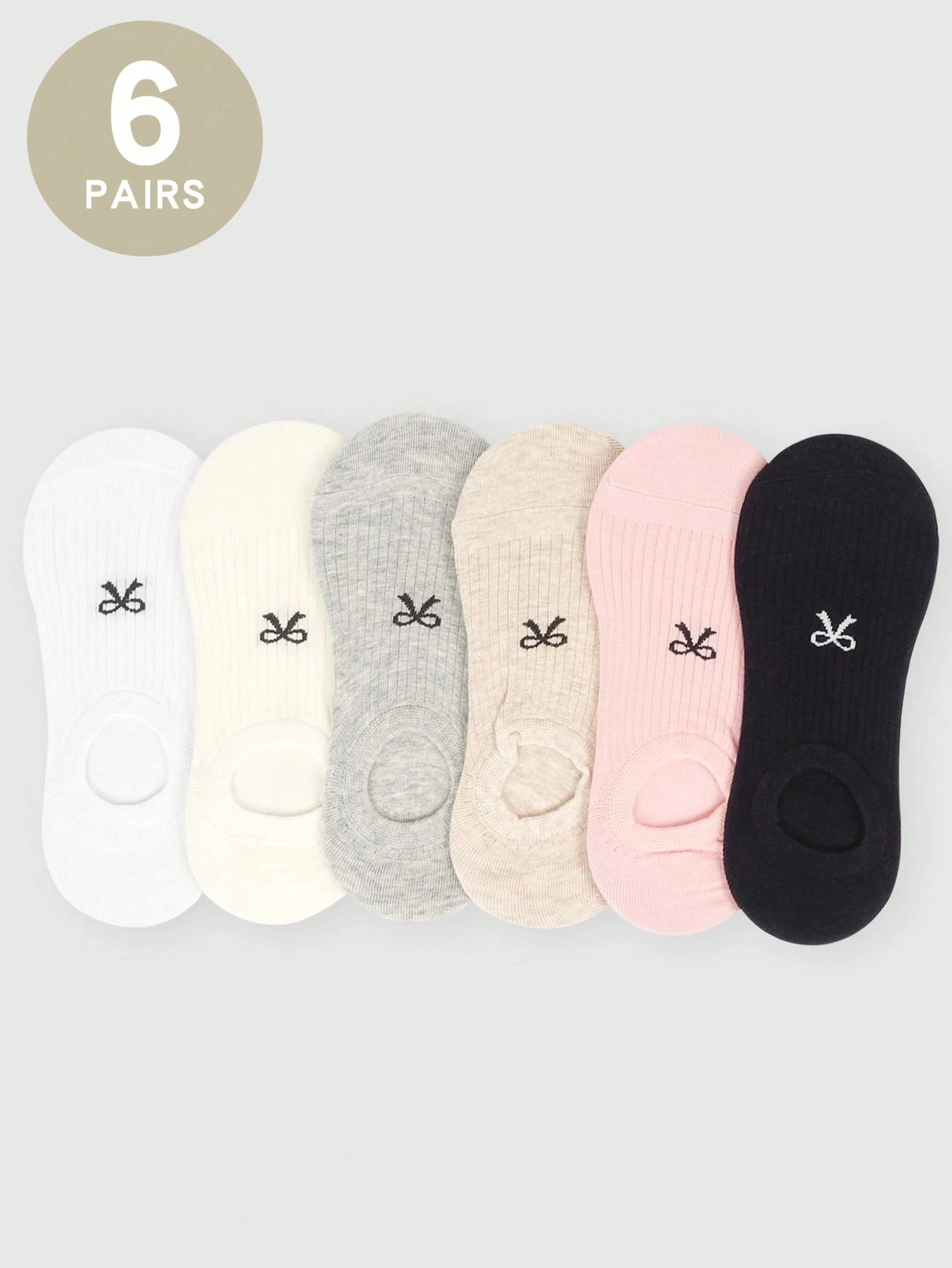6 pares de calcetines invisibles de mujer minimalistas de lazo y unicolor, calcetines cortos de moda casual, para primavera/verano