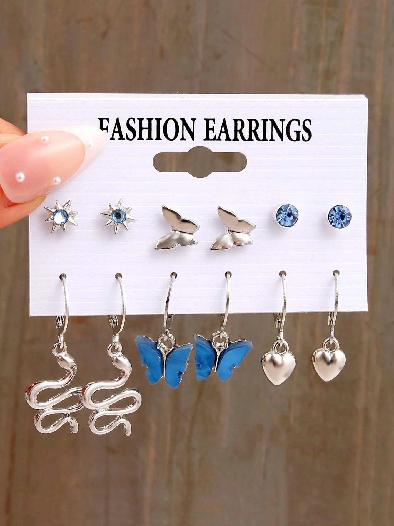 6 pares/set Pendientes con mariposa & con diseño de serpiente